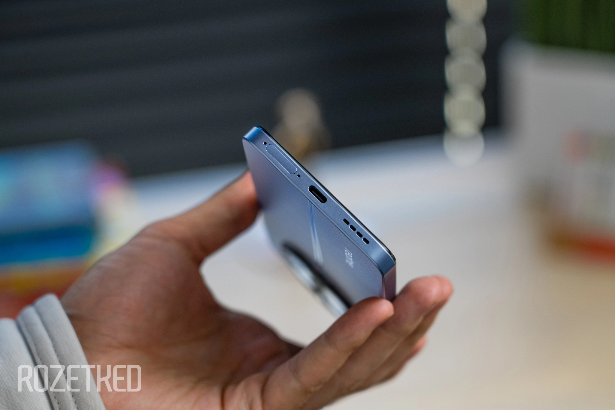 По управлению всё стандартно: качелька громкости и клавиша питания на правом боку, на левом ничего, внизу USB-C, лоток для SIM-карт и отверстия динамика. Обратите внимание, что отверстие для скрепки находится слева от SIM-лотка, а отверстие справа — это микрофон. Они похожего размера, их легко перепутать, так что лучше не ошибаться при установке SIM-карты. На верхнем торце расположен микрофон и редкий в наше время 3,5 мм разъём для проводных наушников.