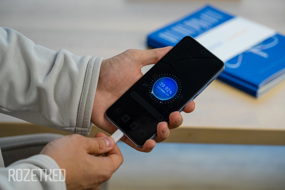 Смартфон с аккумулятором привычной ёмкости 5000 мАч быстро заряжается от комплектной зарядки SUPERVOOC на 67 Вт, что редкость в этом классе. На полную зарядку уходит 47 минут, а до 50% всего 19 минут. Эти замеры производителя легко подтвердить на практике, процесс очень быстрый благодаря технологии двухпоточной зарядки.