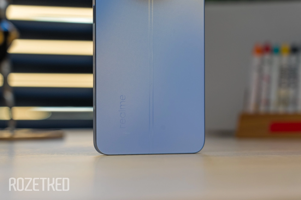 Дизайн от старших представителей семейства по наследству перешёл младшему realme 12. Под этим я подразумеваю стилистику блока с камерами, где поверхность украшена узором из тонких линий, которые стремятся в одну точку. Ещё по корпусу сверху вниз проходит блестящая полоска с объёмным узором, она визуально разделяет его на две половинки.