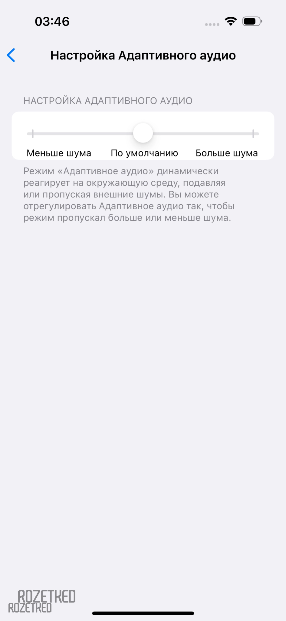 - Задать режимы работы (выключить совсем, прозрачность, шумоподавление или адаптивно)