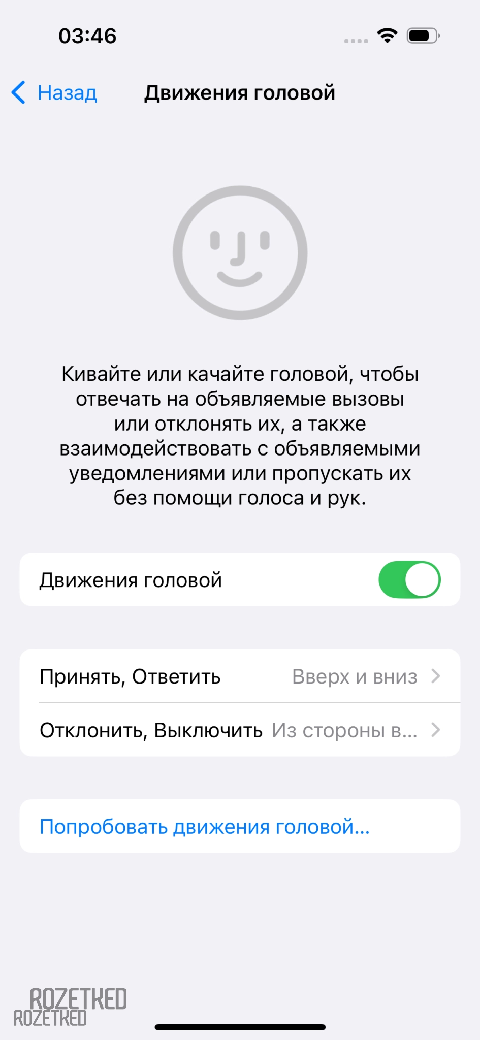Про управление движением головы стоит рассказать отдельно. Можно, например, кивнуть, когда вам звонят, и принять вызов или, наоборот, помотать головой по сторонам и сбросить. С Siri головой тоже можно пообщаться, — она всё поймёт. Это доступно не только в AirPods 3: достаточно обновить ваши наушники, и функция тоже появится. Работает хорошо, со стороны смотрится странно.