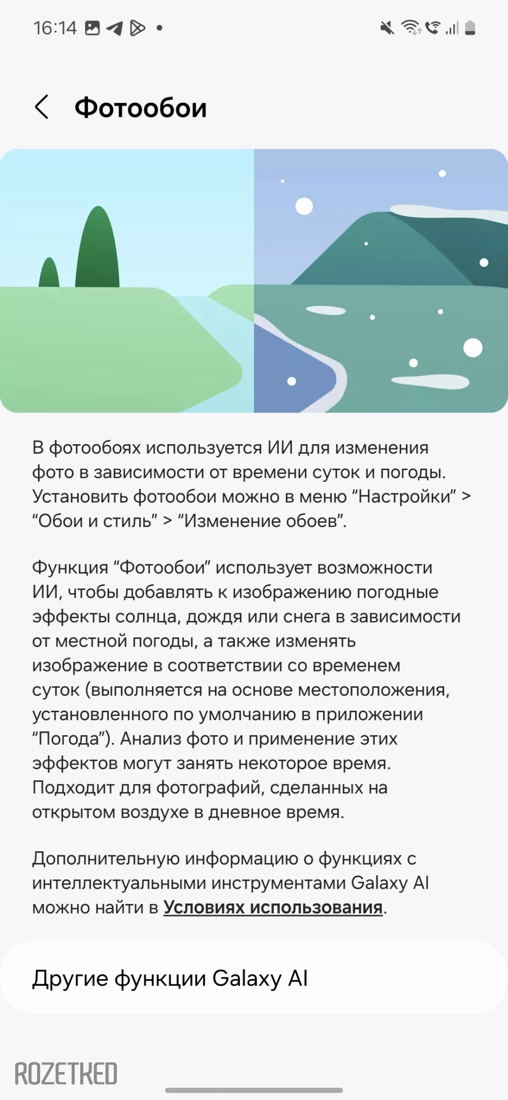 Само собой, предусмотрены полезные режимы для удаления лишних объектов с фотографий и даже настраиваемые обои, где добавляются погодные эффекты в зависимости от местной погоды.