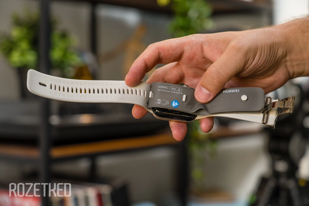 После того, как вы определились с размером браслета, надеваете на него airbag для замера, настраиваете длину так, чтобы часы прилегали к руке, но не сильно, лучше оставить зазор. Дело в том, что манжета для замера давления, очевидно, силиконовая и в ней нет никаких отверстий, а значит, при постоянном прилегании к коже у вас может начаться аллергия, как у меня. Поэтому не нужно плотно застёгивать браслет, на показания это никак не влияет.