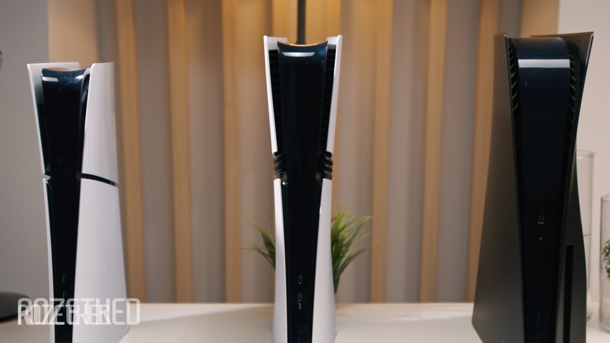 «Прошка» выше PS5 Slim и толще, при этом заметно уже обычной PS5, если смотреть спереди.