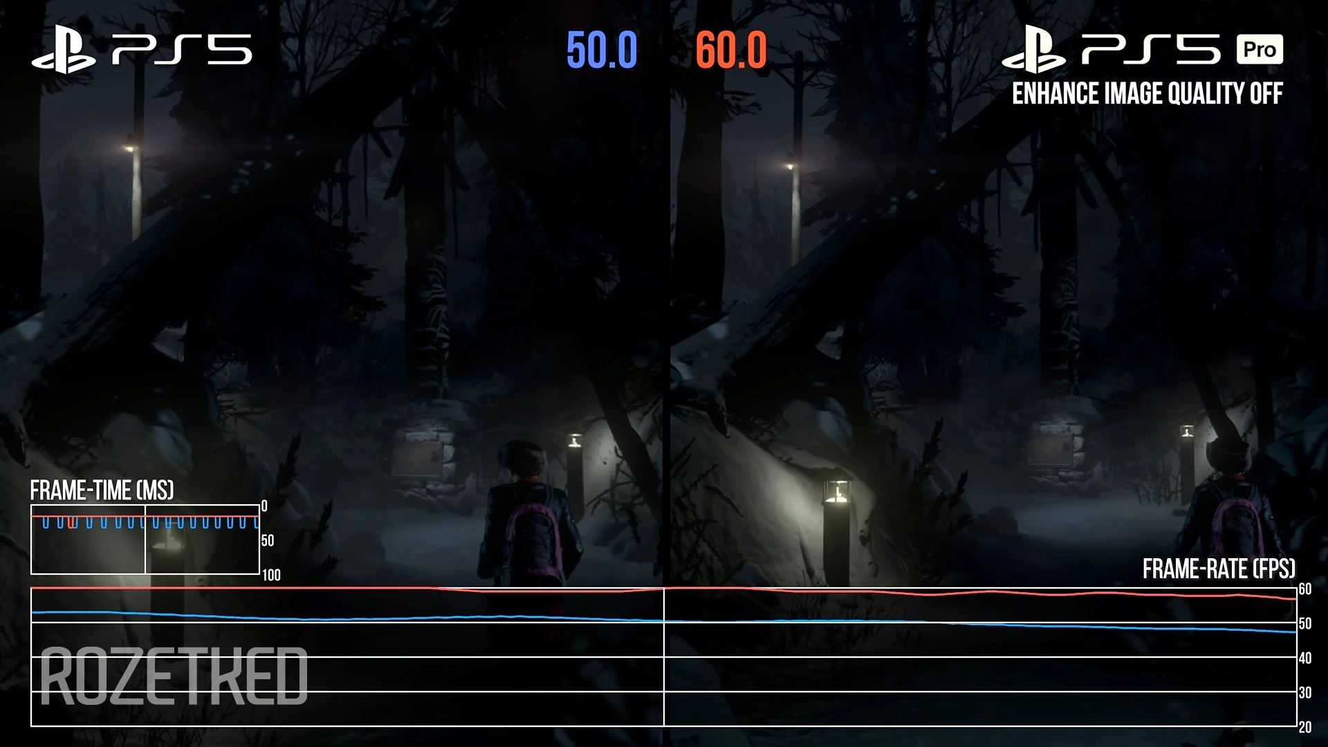Но Game Boost всё-таки работает в PS4-играх, где fps плавающий. Например, в оригинальной Until Dawn. На PS5 Pro она идёт лучше, получается прирост на 5-10 кадров. Интересно, что активация Enhance Image Quality снижает производительность в этой игре, а разницы по картинке вы не заметите.