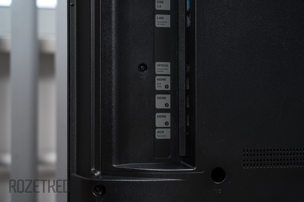 - Порты: HDMI 2.1, 3 шт, USB 2.0, 1 шт, USB 3.0, 1 шт, Ethernet (до 1 Гбит/с), 1 шт, 3,5-мм разъём, 1 шт и разъём S/PDIF, оптический