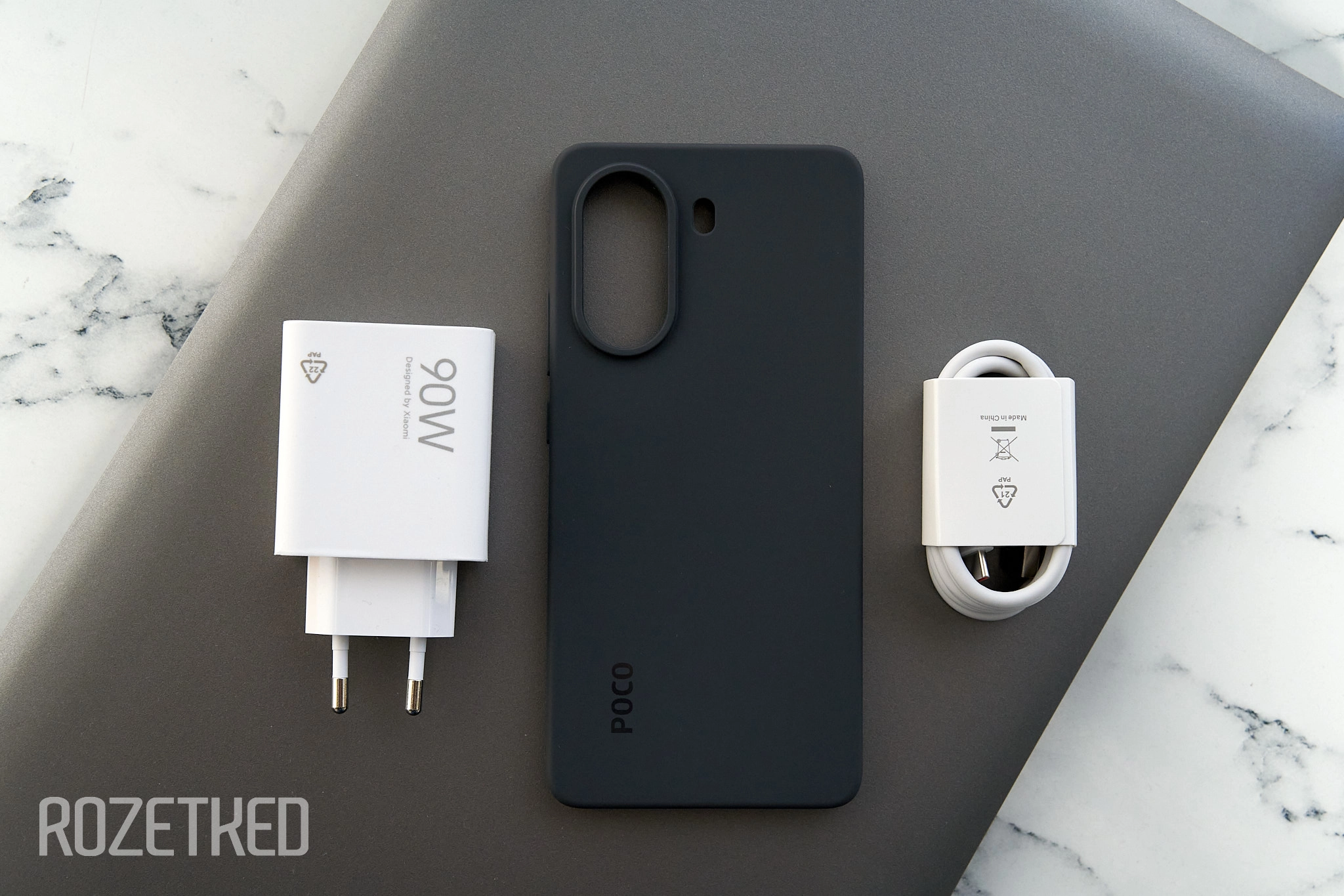 Коробка основательная, крупная, внутри полный набор полезных предметов. Быстрая зарядка, кабель USB-A на USB-C, скрепка для SIM-карты и силиконовый плотный чехол из непрозрачного материала. Его можно было бы поругать, что он скрывает яркий смартфон, но, скорее, наоборот. Если хочется на время отдохнуть от броского дизайна, то можно нейтрализовать жёлтый цвет таким простым образом.