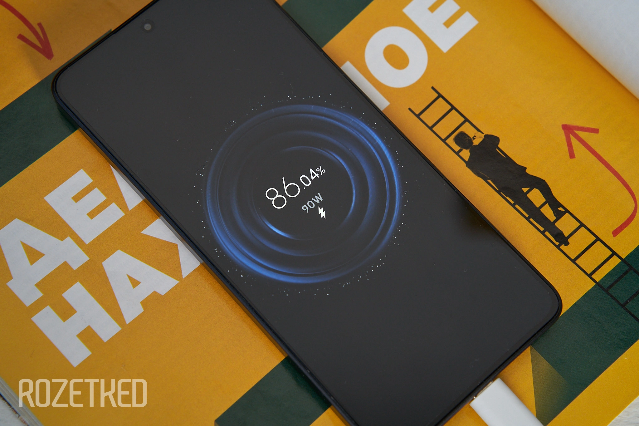 В комплекте идёт быстрая зарядка на 90 Вт, которая полностью заряжает севший смартфон за 45-50 минут. Во время такого стремительного процесса корпус нагревается, но функцию можно отключить в настройках, если переживаете за ресурс батареи. Тогда смартфон будет заряжаться не так резво, но и греться по ходу дозарядки будет меньше.