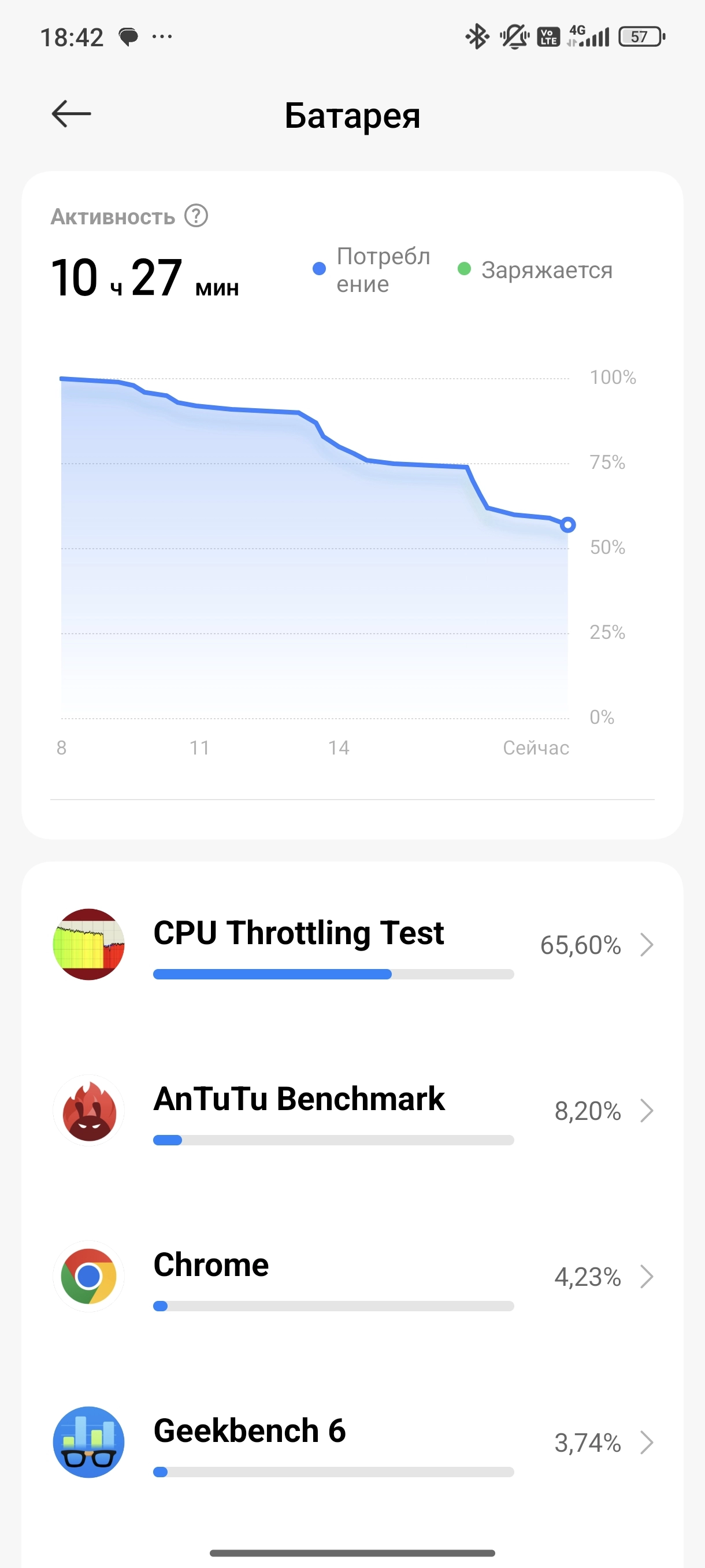 Если играть, то за час в CoD Mobile уходит около 12% на среднем уровне яркости, а при просмотре онлайн-видео уходит 5-6% в час.