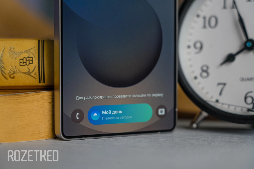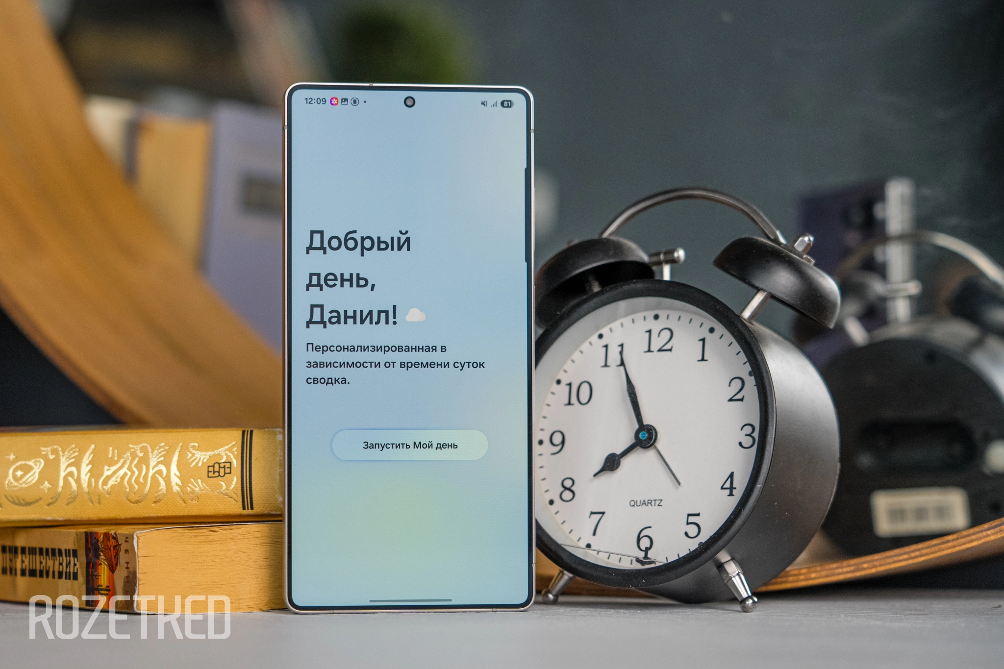 Функция «Мой день» собирает важную информацию и формирует персонализированный органайзер. В моём случае ограничилось прогнозом погоды — видимо, живу слишком скучно. Но в теории система умеет напоминать о событиях, предупреждать о пробках и предлагать полезные рекомендации. Из реально удобного — Circle to Search, когда обводишь объект на экране, и смартфон подсказывает, что это такое.