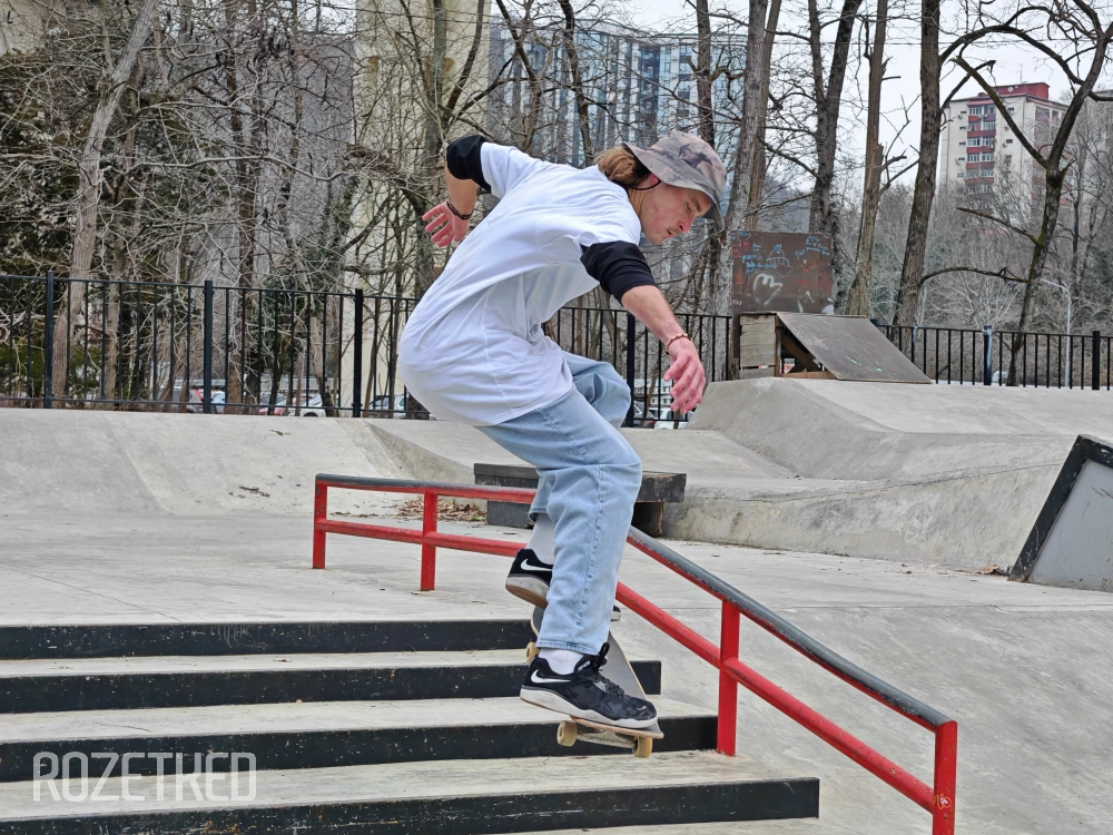 Собственно, серийная съёмка — как раз та ультимативная фишка, которая понравится спортсменам и всем, кто живёт в драйве. Вот, например, как получается на основной сенсор съёмка скейтбордистов и сноубордистов: