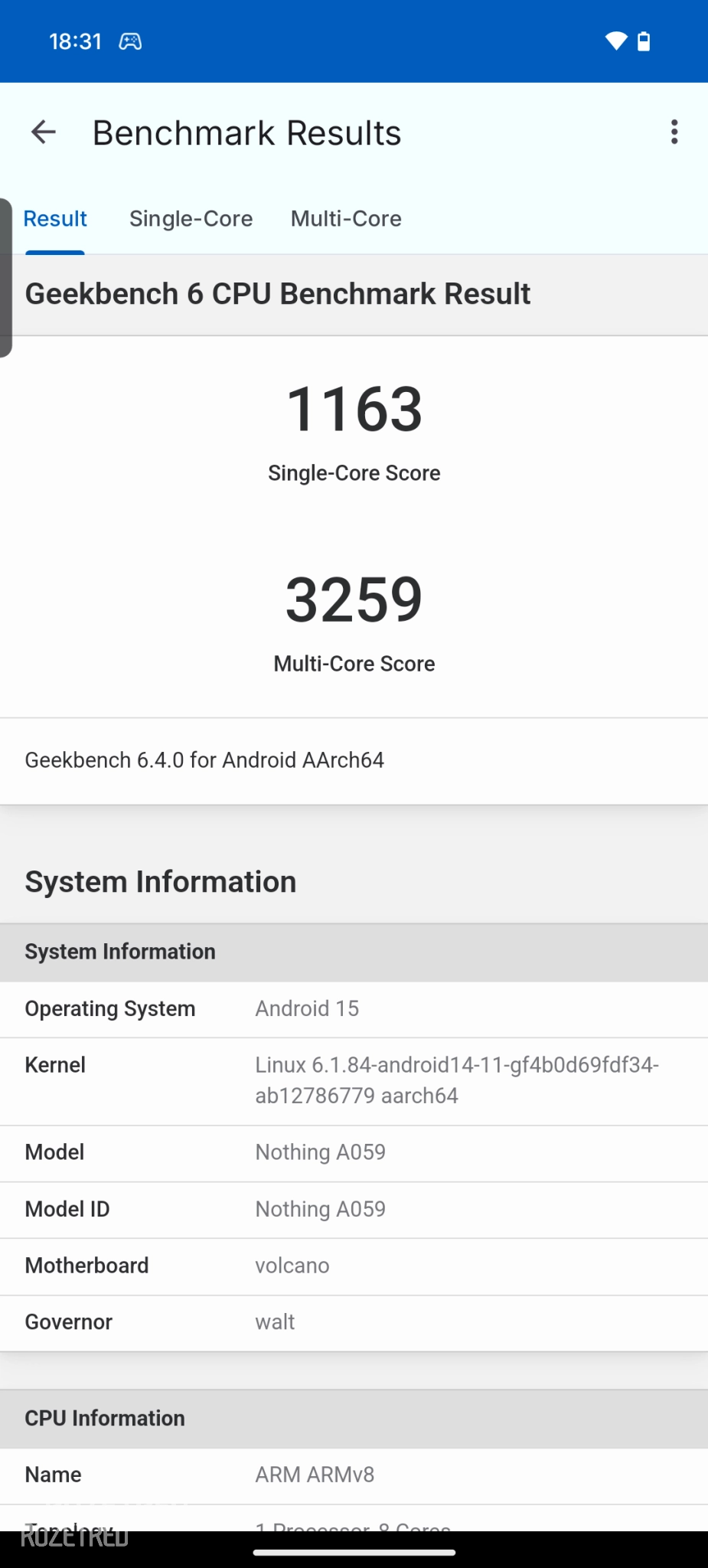| Geekbench 6.3.0 (Single) | 1 163 | 1 082 | 1 201 |