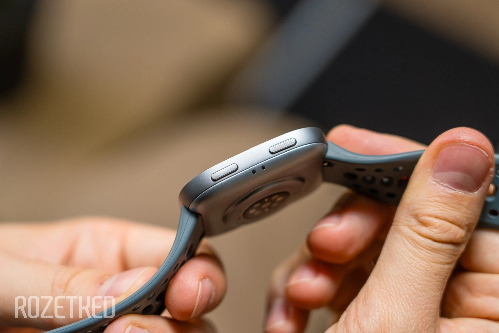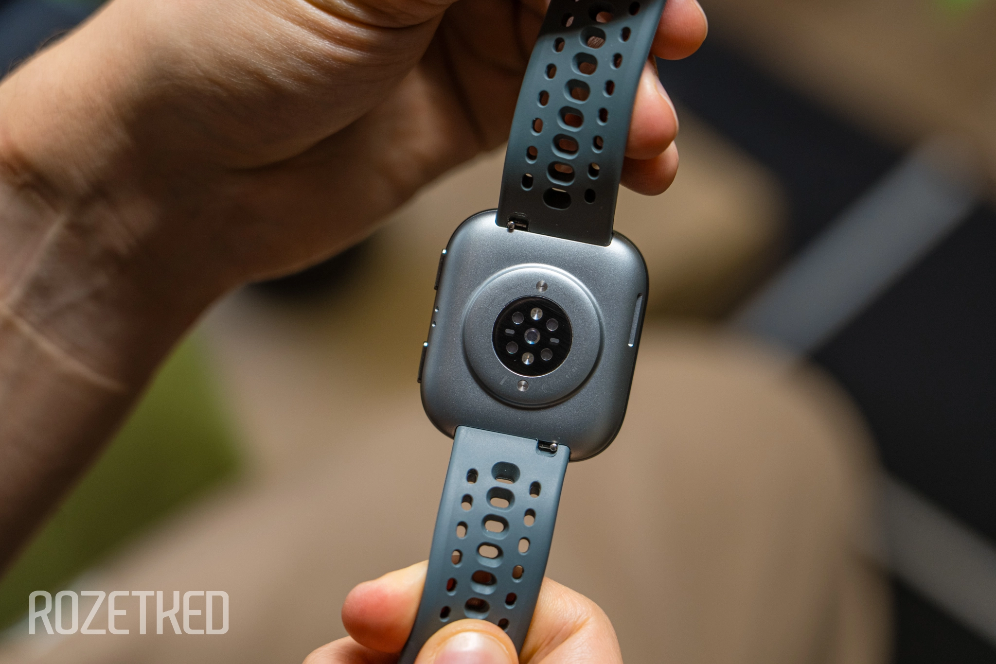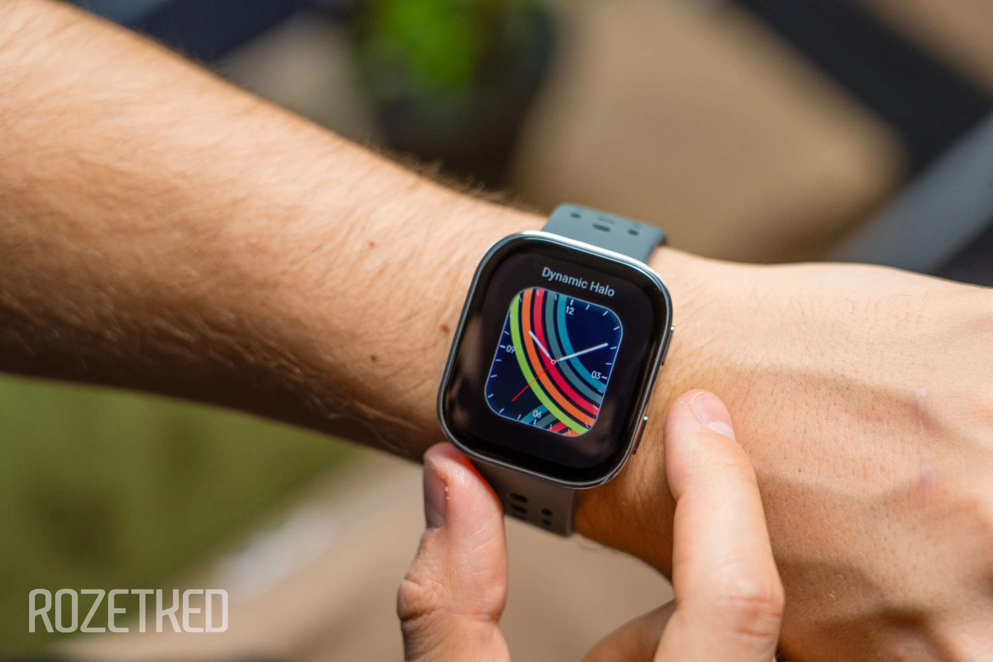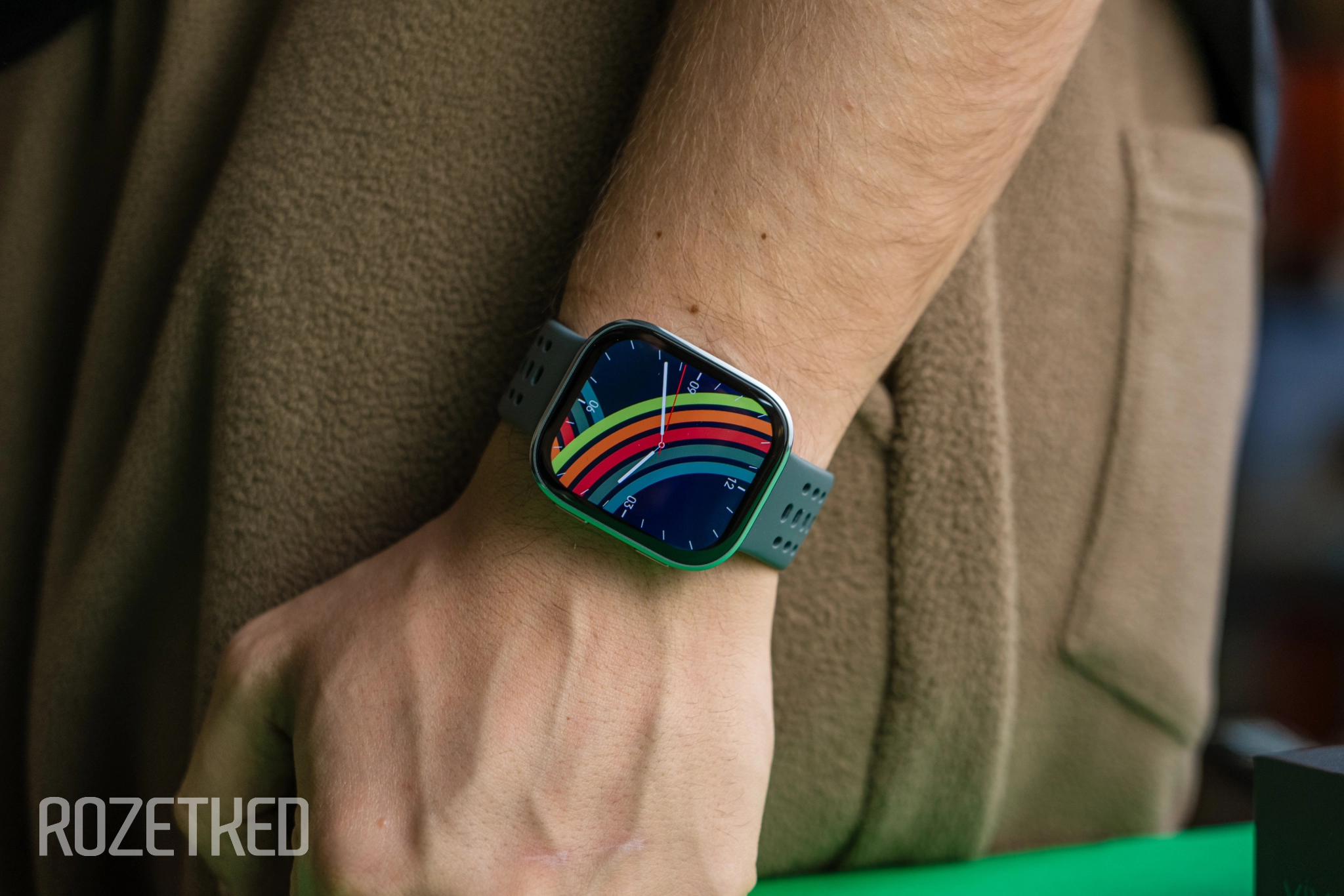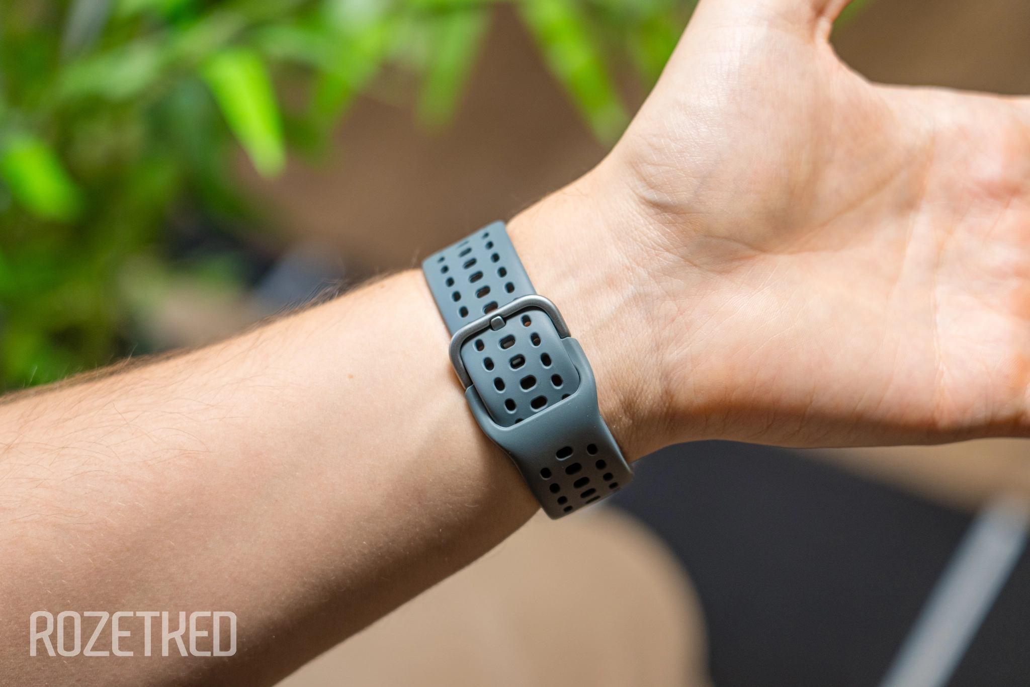У часов небольшой вес — они лёгкие и весят чуть более 30 грамм; толщина тоже небольшая. У них крупный экран, но нет ощущения громоздкости. Обычно это выражается в том, что большие часы могут цепляться за рукава, здесь такого в принципе нет.