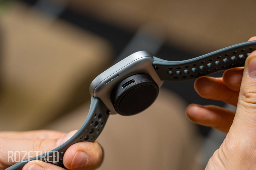 Для беспроводной зарядки используется магнитная шайба, которая прочно цепляется к корпусу часов. Немного странно, что в комплекте нет кабеля, но USB-С прижился.