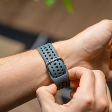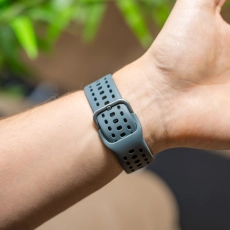 Внешний вид универсальный — у часов нет вызывающего спортивного стиля, при этом они нормально сочетаются с классической офисной рубашкой. Разве что ремешок выдаёт активную натуру часов, но это уже вопрос вкуса. В моём случае это полиуретановый гибкий ремешок серого цвета с отверстиями, чтобы рука меньше потела во время тренировок. Ремешок при необходимости можно заменить на любой подходящий 20 мм, выбор огромный. Кожаные, силиконовые, металлические разных цветов и дизайнов.