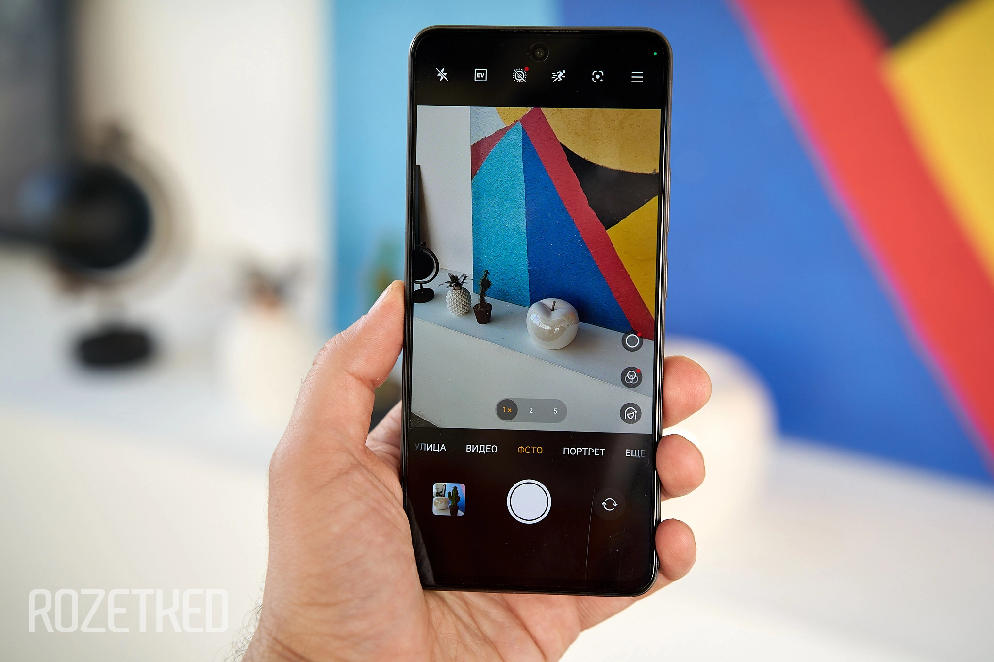 При съёмке в обычном режиме смартфон делает 12,5-мегапиксельные снимки с объединением пикселей. Картинка получается резкой, цвета натуральные, без перенасыщенности. Оптического зума нет, но цифровое приближение до 2х работает нормально, без заметной потери качества. Дальше — уже чистая цифра, и на 5х артефакты видны невооружённым глазом.