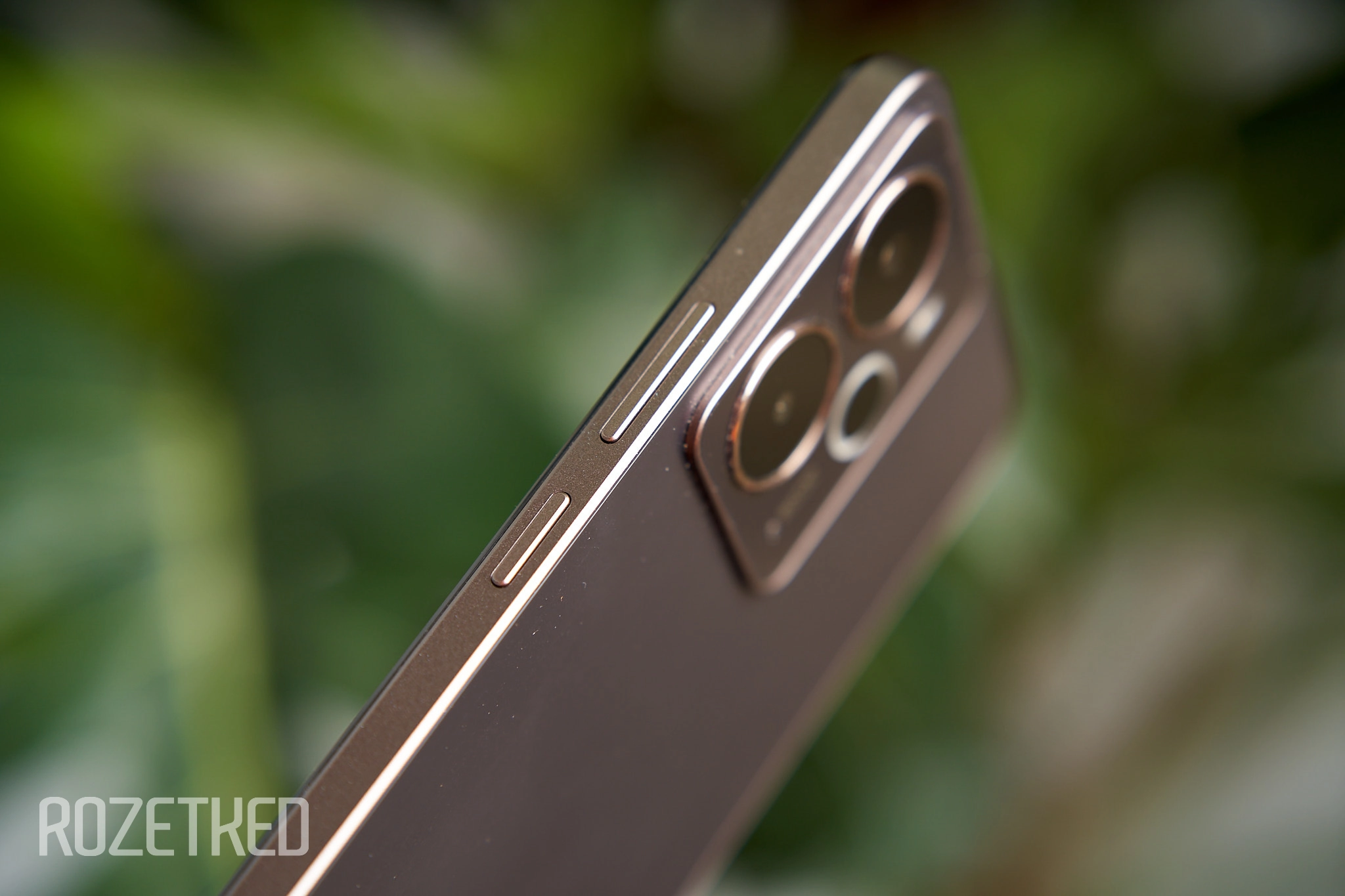 В плане материалов realme 14 ожидаемо ничем не удивляет: всё выполнено из пластика хорошего качества. Как обычно говорят, не скрипит и не люфтит, тест на скручивание проходит без последствий. Смартфон в меру крупный, не тяжёлый и без излишков по весу. Объектив основной камеры чуть утоплен в пластиковый обод — так что на столе лежит устойчиво, и линзы не царапаются, и сам realme 14 на поверхности не шатается.