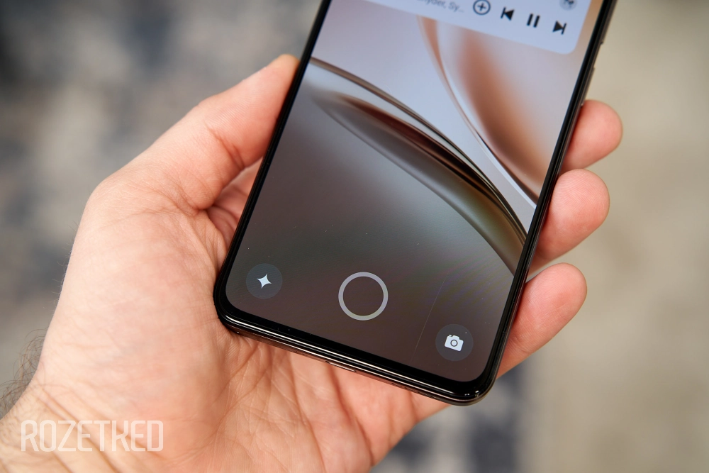 Камеры вписаны в прямоугольный модуль в верхнем левом углу. Между камерами находится маленькое белое светодиодное кольцо. Оно работает как индикатор: мигает при уведомлениях, и это удобно, когда телефон лежит экраном вниз. Не нужно каждый раз включать дисплей, чтобы проверить, вдруг пропустил что-то важное.