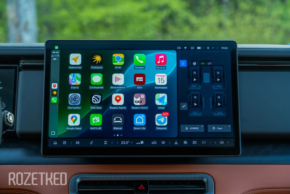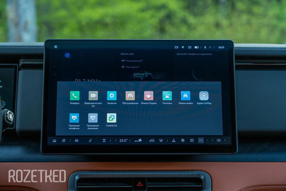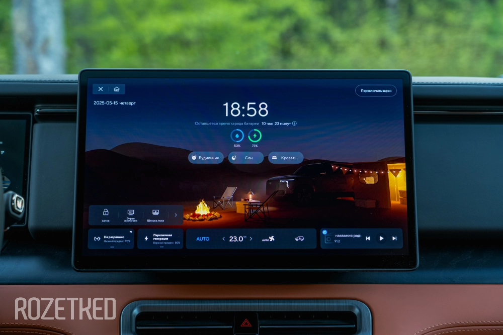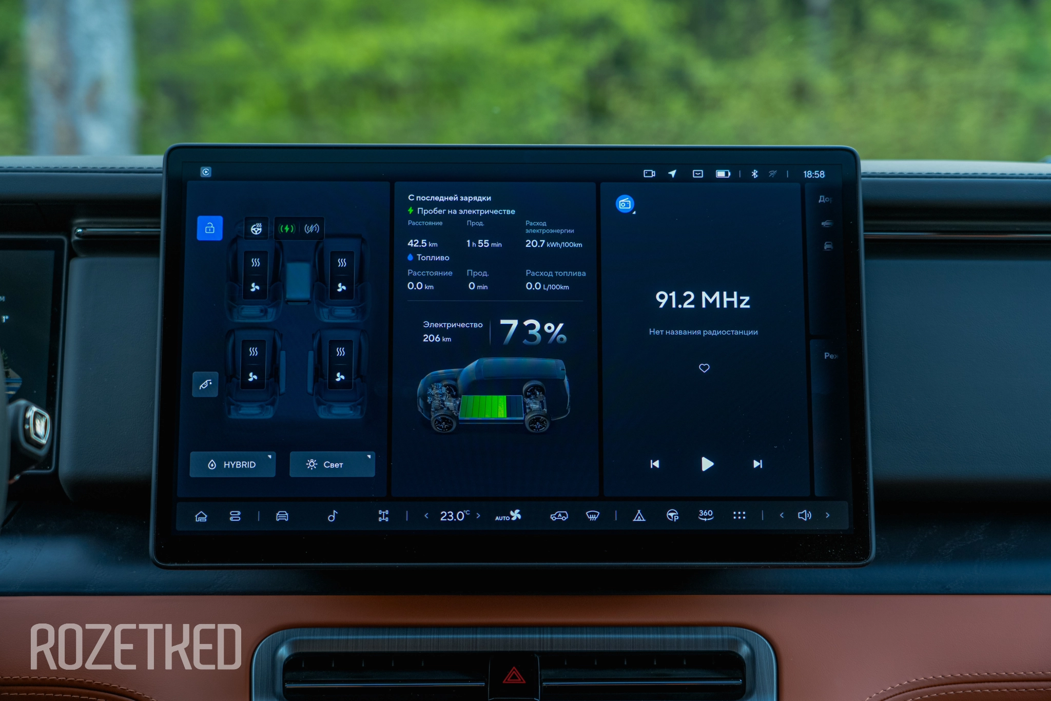 Расход топлива, по заводским данным, невелик за счёт того, что основная часть поездки — электрическая. Достаточно сказать, что ROX 01 не сжигает бензин напрасно: двигатель включается по необходимости и выключается при низкой нагрузке. Зарядка батареи от сети (до 80% при 80 кВт) обещает занять около 30–50 минут (в зависимости от условий). Важно, что завод обещает холодный пуск даже при -43 градусов. Повод взять авто ещё на один тест-драйв зимой! Хотя для таких температур придётся ехать в Сибирь.