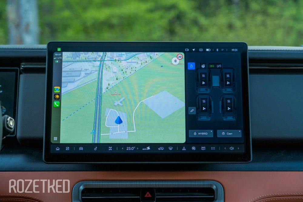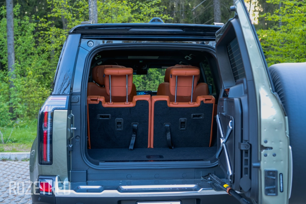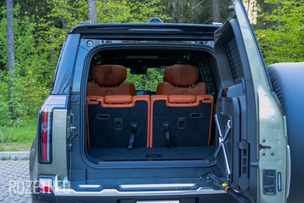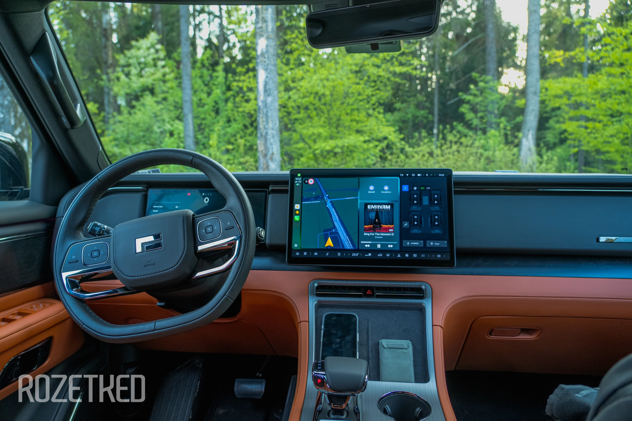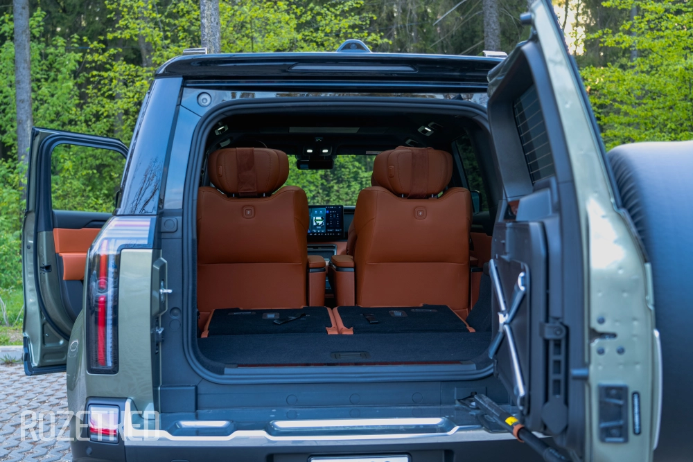 С учётом гибридной схемы низы у ROX 01 «пулемётные»: при нажатии на педаль мгновенно подаётся крутящий момент, а внедорожник буквально «рвётся вперёд». Это превращает его в настоящий спорткар: динамичный, быстрый и хорошо управляемый. Вот этот контраст — солидные габариты и взрывной старт — запоминается особенно.