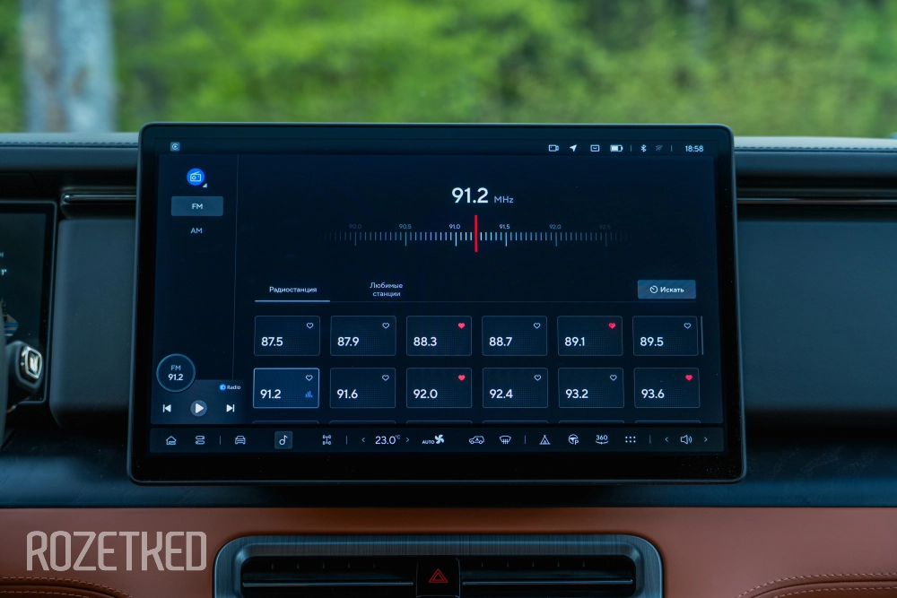 За рулём ROX 01 сидишь высоко — во всю ширину капота видно дорогу. Тут уместно другое сравнение — как Land Rover. Подвеска с адаптивными амортизаторами довольно энергоёмкая: на хорошем асфальте машина почти не раскачивается, уверенно держит курсовую устойчивость, что придётся по душе при дальних пробегах.