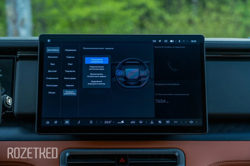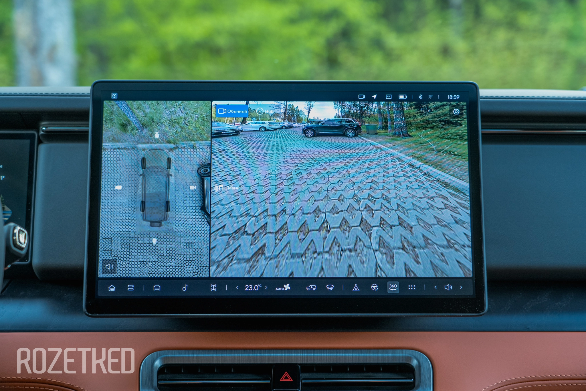 В настройках мультимедиа можно также включить ассистента парковки с рулевым управлением — полезно, учитывая огромные размеры.