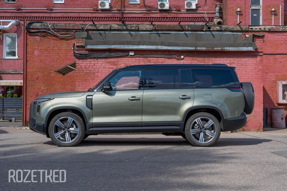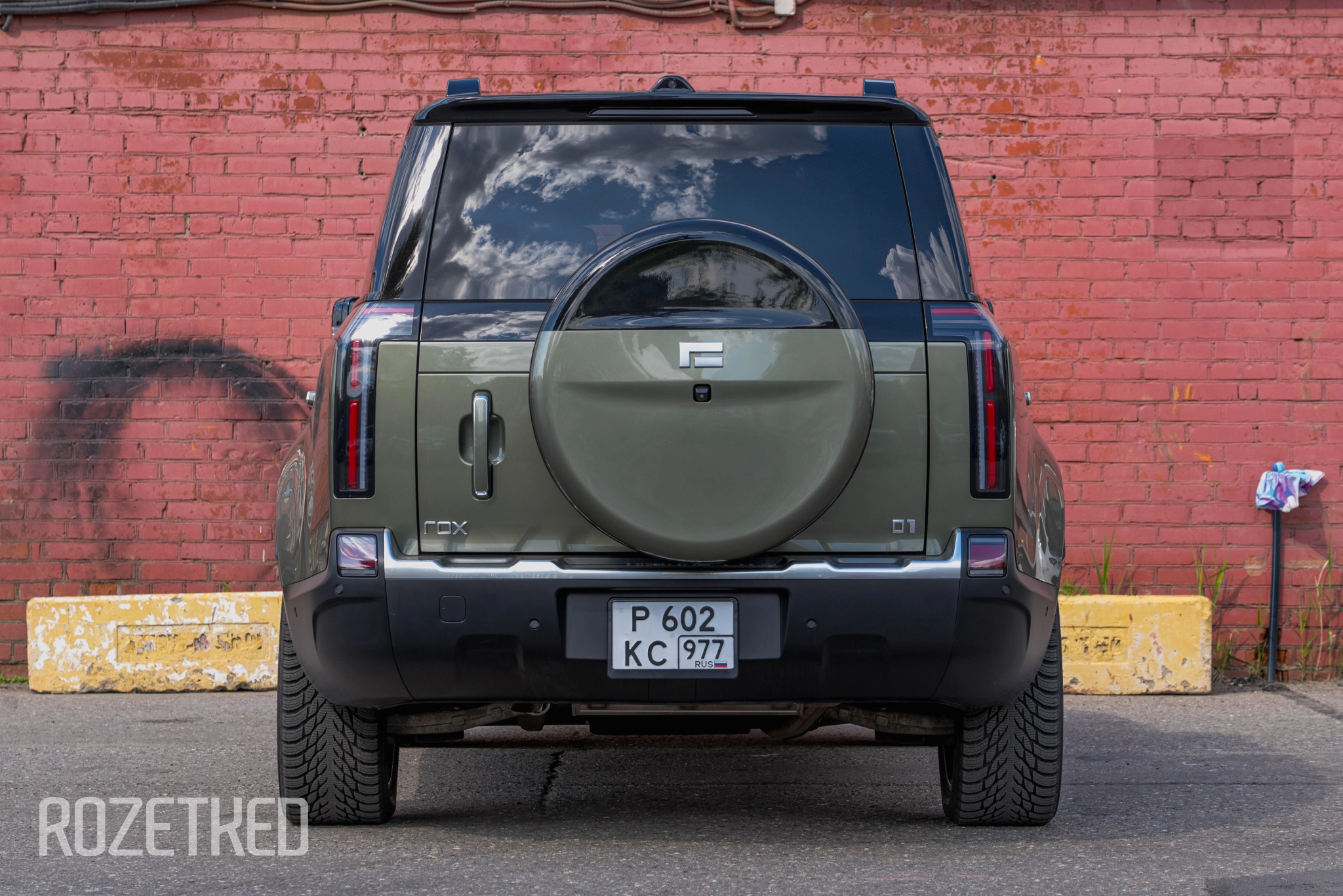 Передняя часть украшена светодиодной оптикой и крупной решёткой, боковые поверхности — массивные фальш-арки крыльев и широкие дверные панели. Несмотря на внушительные габариты, ROX 01 старается казаться современным и практичным: у него нет навязчивых «модных» элементов вроде выдвижных ручек или камер вместо зеркал, а нижние кромки кузова защищены чёрными пластиковыми накладками — они не портят внешность, но добавляют практичности при грязном или бездорожном использовании.