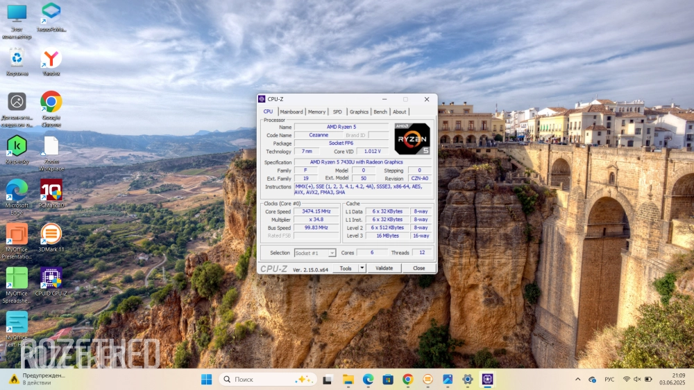 - Процессор: AMD Ryzen 5 7430U (6 ядер, 12 потоков, частота до 4,3 ГГц)