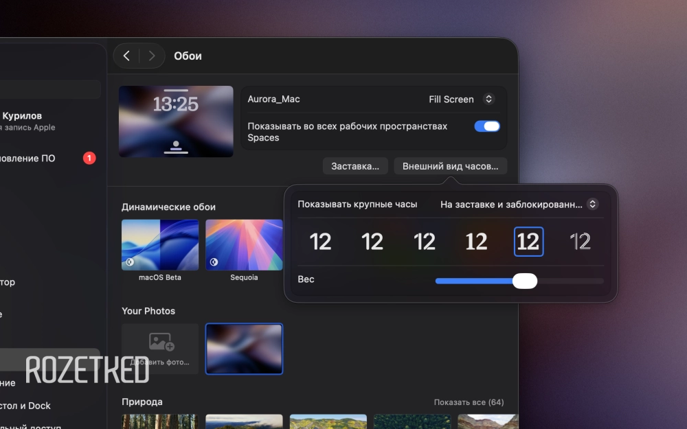 Стянули с iPhone и настройку стиля часов на экране блокировки. Можно даже отрегулировать толщину шрифта.