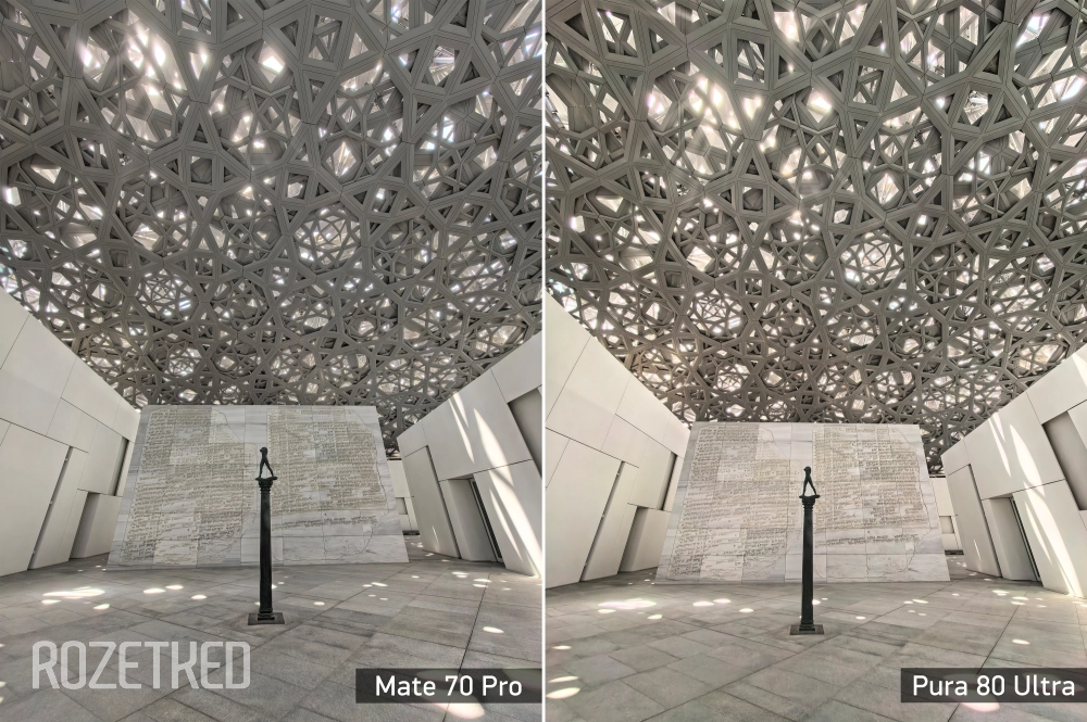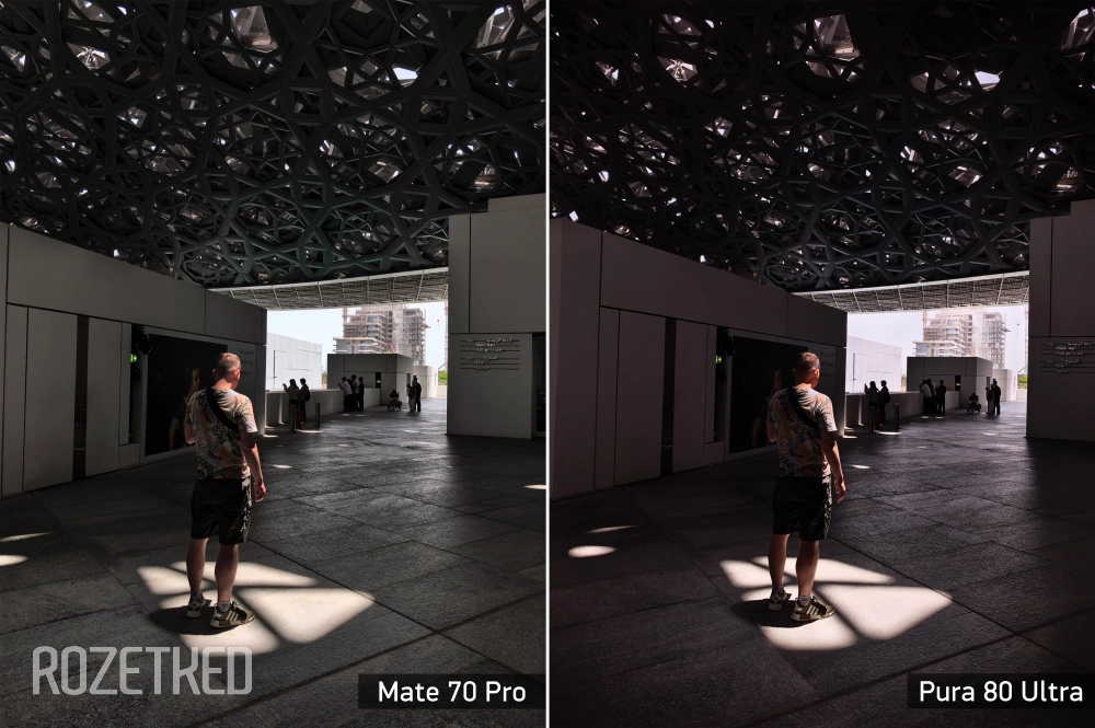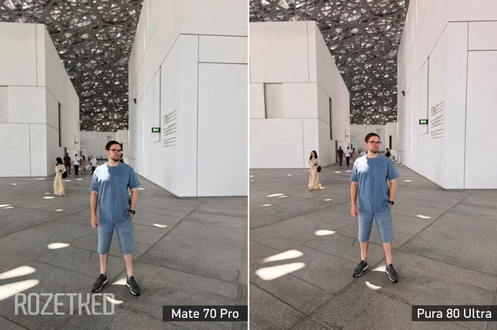 Несмотря на то, что картинка мне нравится, баланс белого и спектральный сенсор тут явно настроены не так, как в Mate 70 Pro. В последнем преобладают тёплые тона, это хорошо заметно при прямом сравнении. Плохо это или хорошо — сказать сложно. Однозначно можно сказать, что Mate пока рано списывать со счёта.