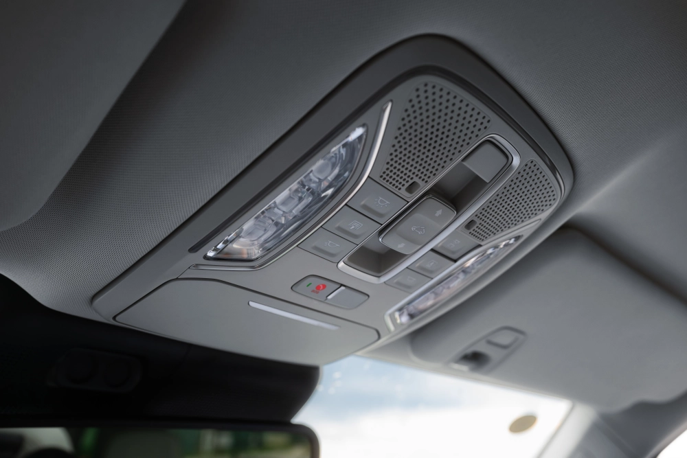 Передняя панель сочетает в себе «цифру» и аналоговые органы управления. Например, на руле есть несколько кнопок для управления системами автомобиля. Также ряд физических клавиш установлен возле рычага передач (автопаркинг и включение камер 360), ещё клавиши есть на дверном подлокотнике и на крыше рядом со светильником. В общем, любители пощёлкать кнопками останутся рады.