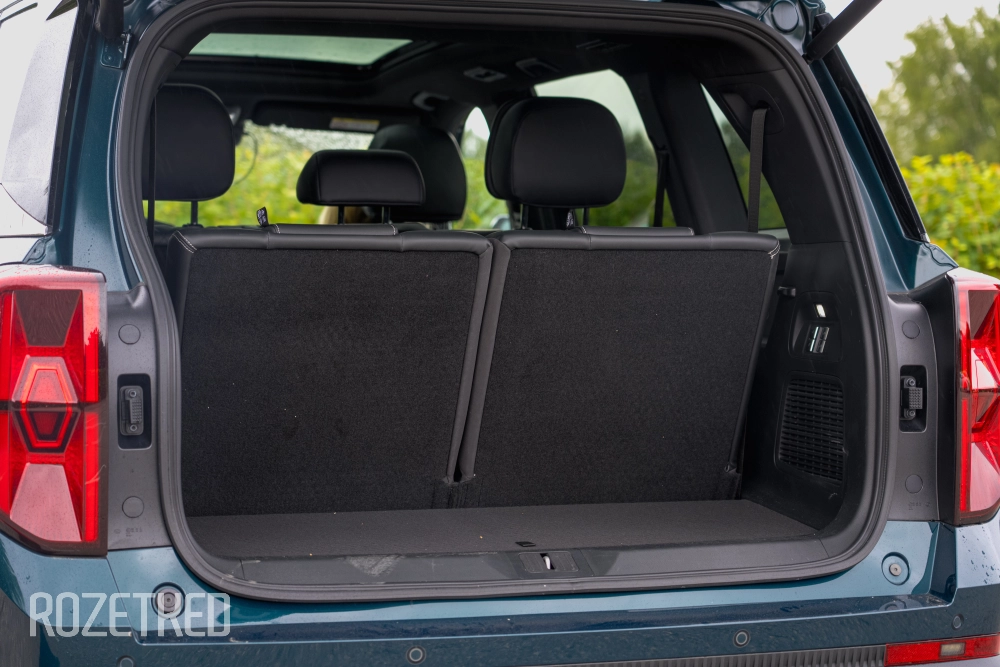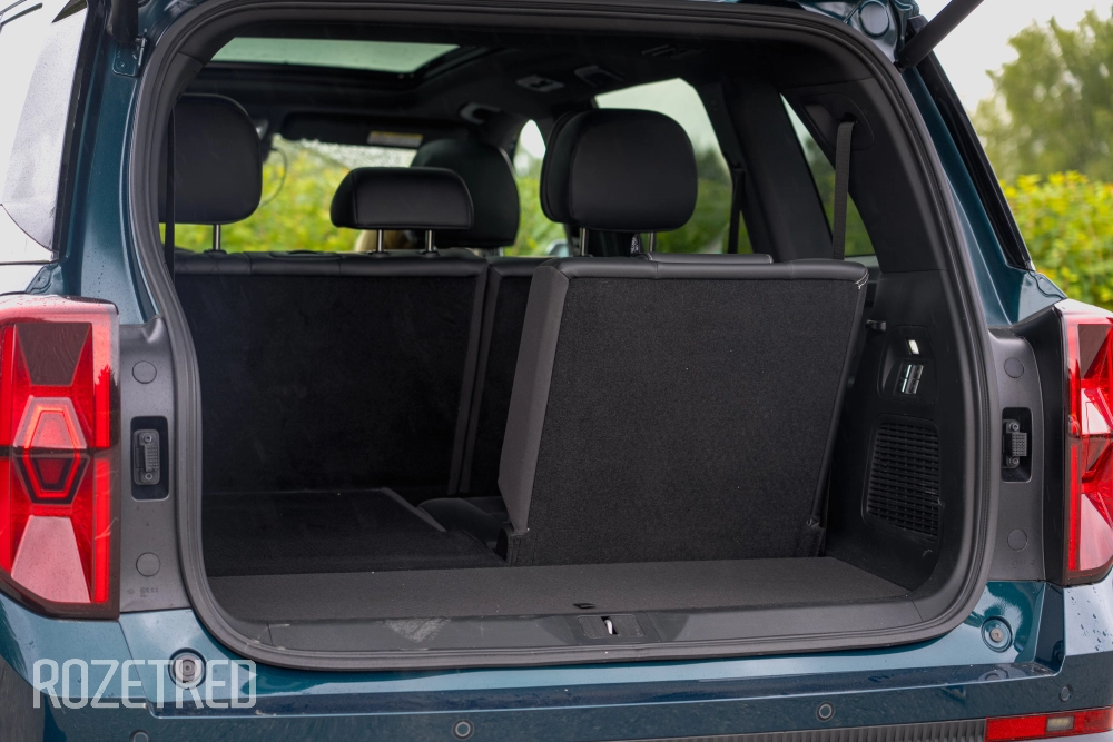 Даже при сложенном только третьем ряде объём багажника впечатляет — 800 литров; если сложить и второй ряд, то объём достигает почти 1860 литров. Переезжать с таким авто одно удовольствие. Но если вам этого мало, можно докупить бокс на крышу, но тогда от панорамы становится мало смысла.