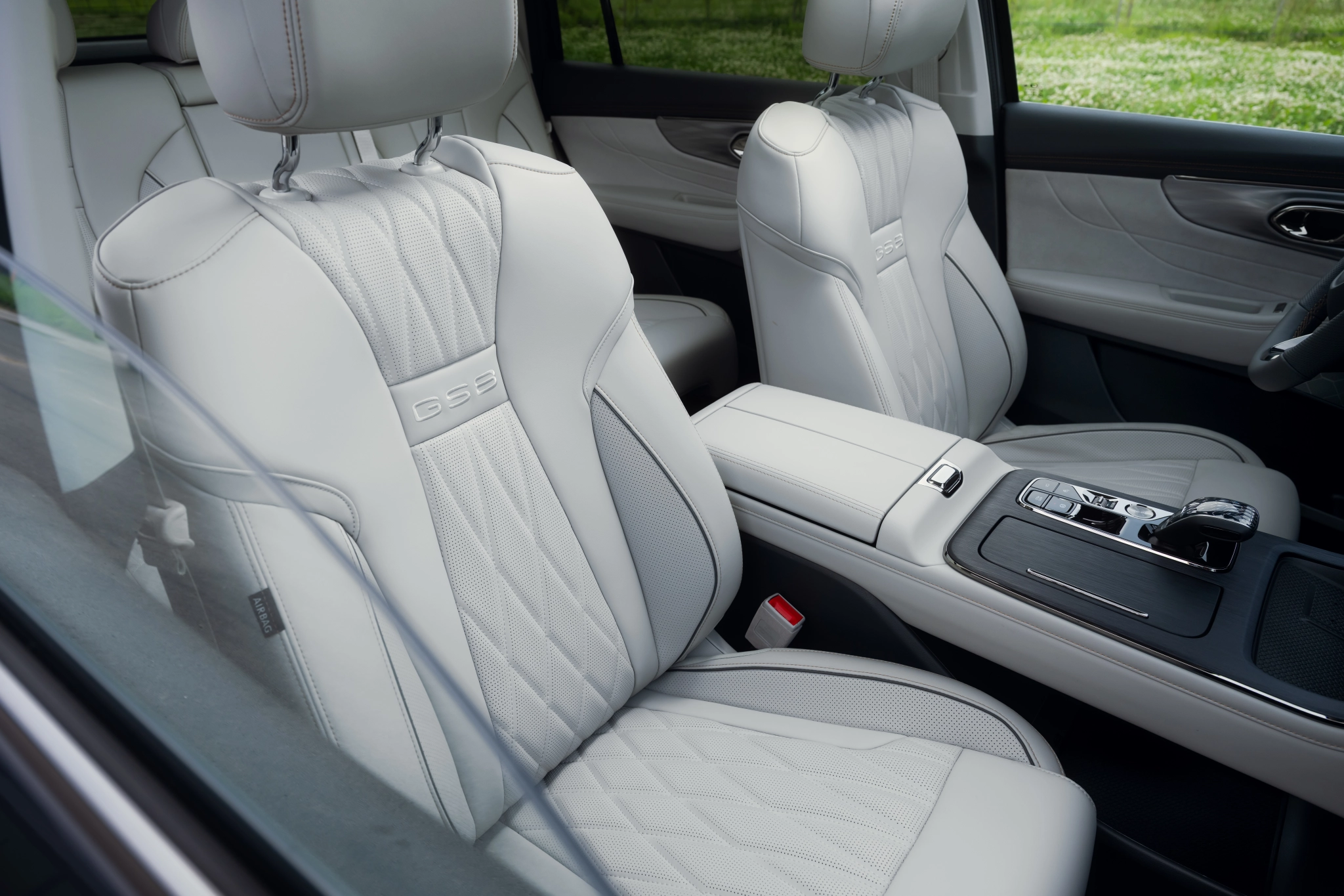 GAC GS8 доступен с несколькими расцветками салона на выбор. Самая интересная версия, на мой вкус, та, где серый пластик сочетается с белой кожаной обивкой и серебристыми вставками под металл, и белыми сиденьями. Выглядит интереснее, чем чёрный вариант с красными акцентами или чёрный с зелёными боковыми элементами.