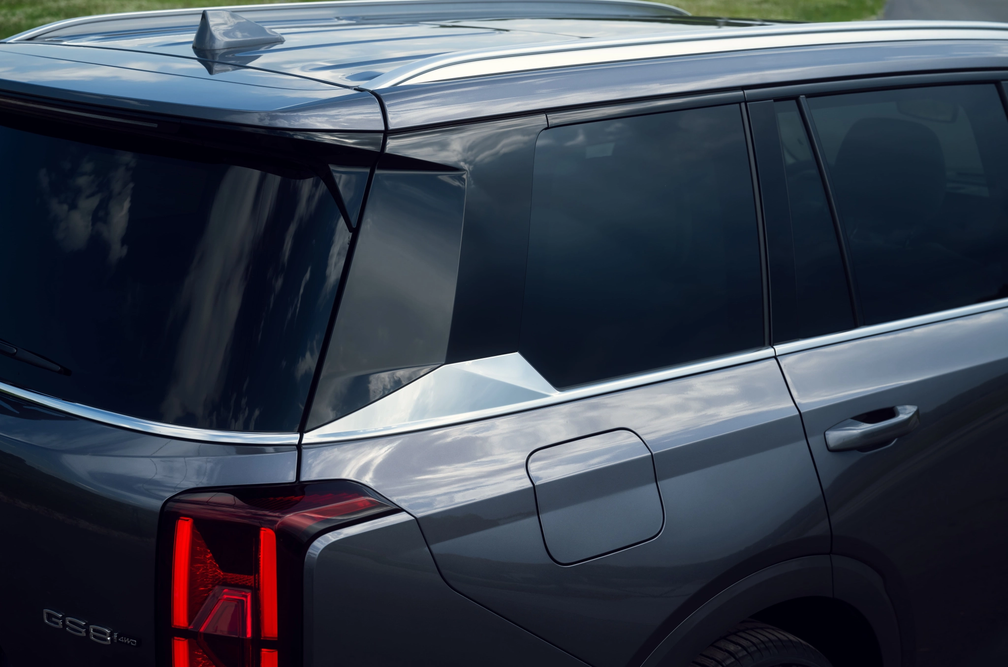 Профиль GS8 строгий и «правильный». Длинный капот плавно переходит в пологую крышу, линия которой тянется к скошенной пятой двери. Колёсная база 2920 мм, клиренс 200 мм — достаточно, чтобы покататься за городом или не бояться, что заденете бордюр. На крыше установлены интегрированные рейлинги, к которым можно закрепить багаж или аксессуары.