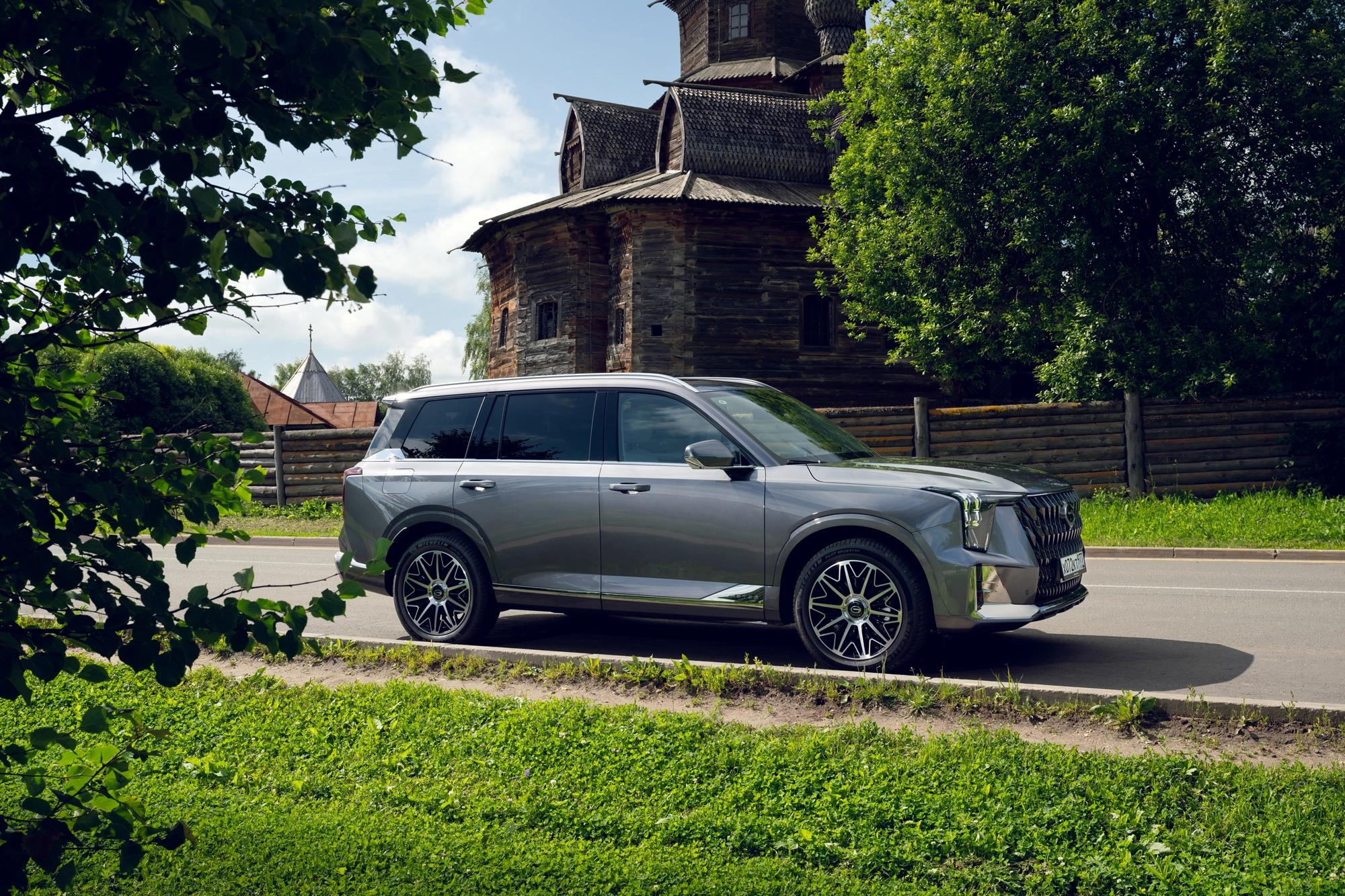 По авто также заметны низкий хромированный молдинг порога и рельефная «юбка» вдоль дверей. В дополнение к этому идут 20-дюймовые стильные диски (255/50 R20) — подобраны идеально, вписываются в общий дизайн.