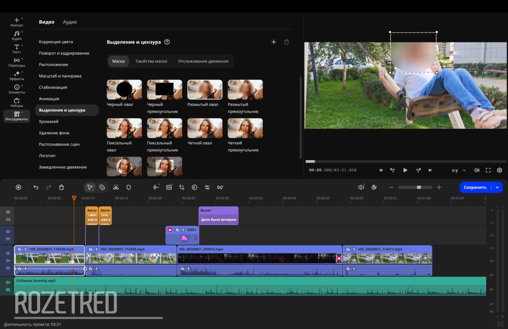 Удобное управление, готовые шаблоны, быстрый экспорт и адекватная цена. Всё на месте. Для тех, кто хочет смонтировать семейный ролик, оформить влог или сделать первые шаги в YouTube, «Мовавика Видео» — понятное решение с достаточным количеством функций.