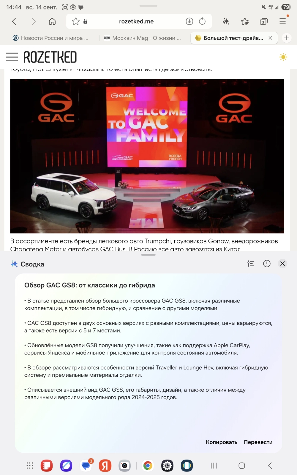 Планшет дружит и с голосовыми записями — превращает длинное аудио в короткую выжимку. В браузере тоже орудует AI-помощник: он переводит тексты и сокращает лонгриды. Ну и для кого теперь писать длинные опусы вроде этого? Для работы есть DeX-режим, когда планшет превращается в почти полноценный ноутбук. У него несколько рабочих столов, подключение внешнего монитора и удобное размещение окон.