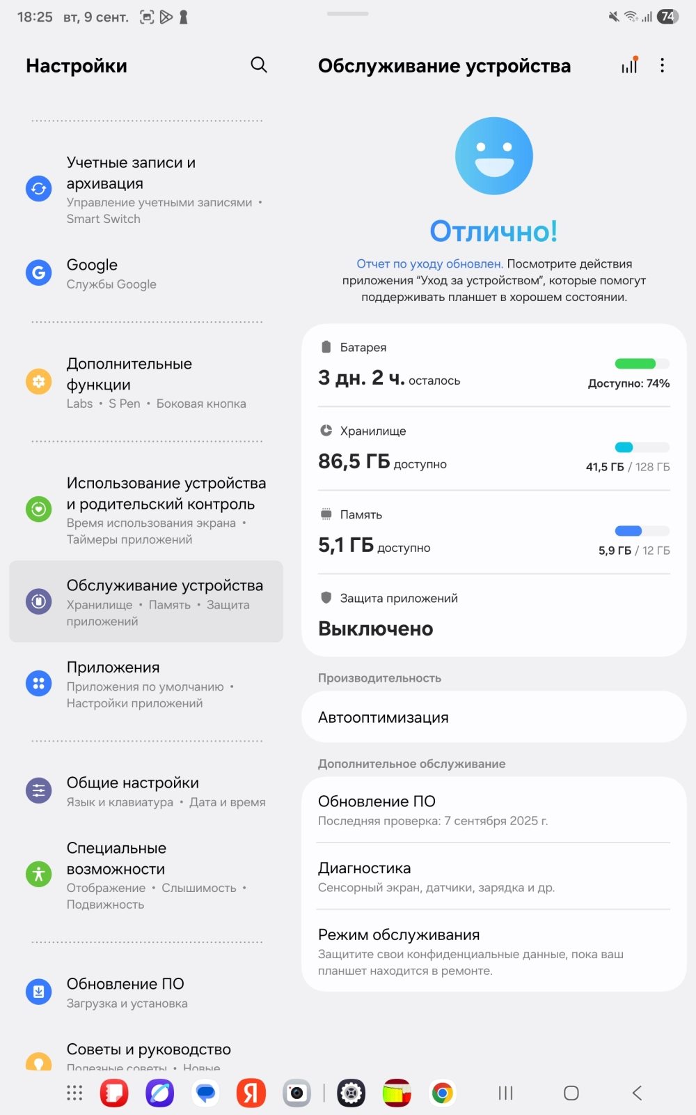 У планшета аккумулятор на 8400 мАч. Не сказать, что это рекорд, но в реальности Samsung Galaxy Tab S11 спокойно выдерживает полный рабочий день. Видео крутится до 18 часов подряд: то есть путешествие Москва–Бали с пересадкой можно пережить без розетки, если, конечно, не прерываться на игры. Тогда утекает около 15–17% в час.