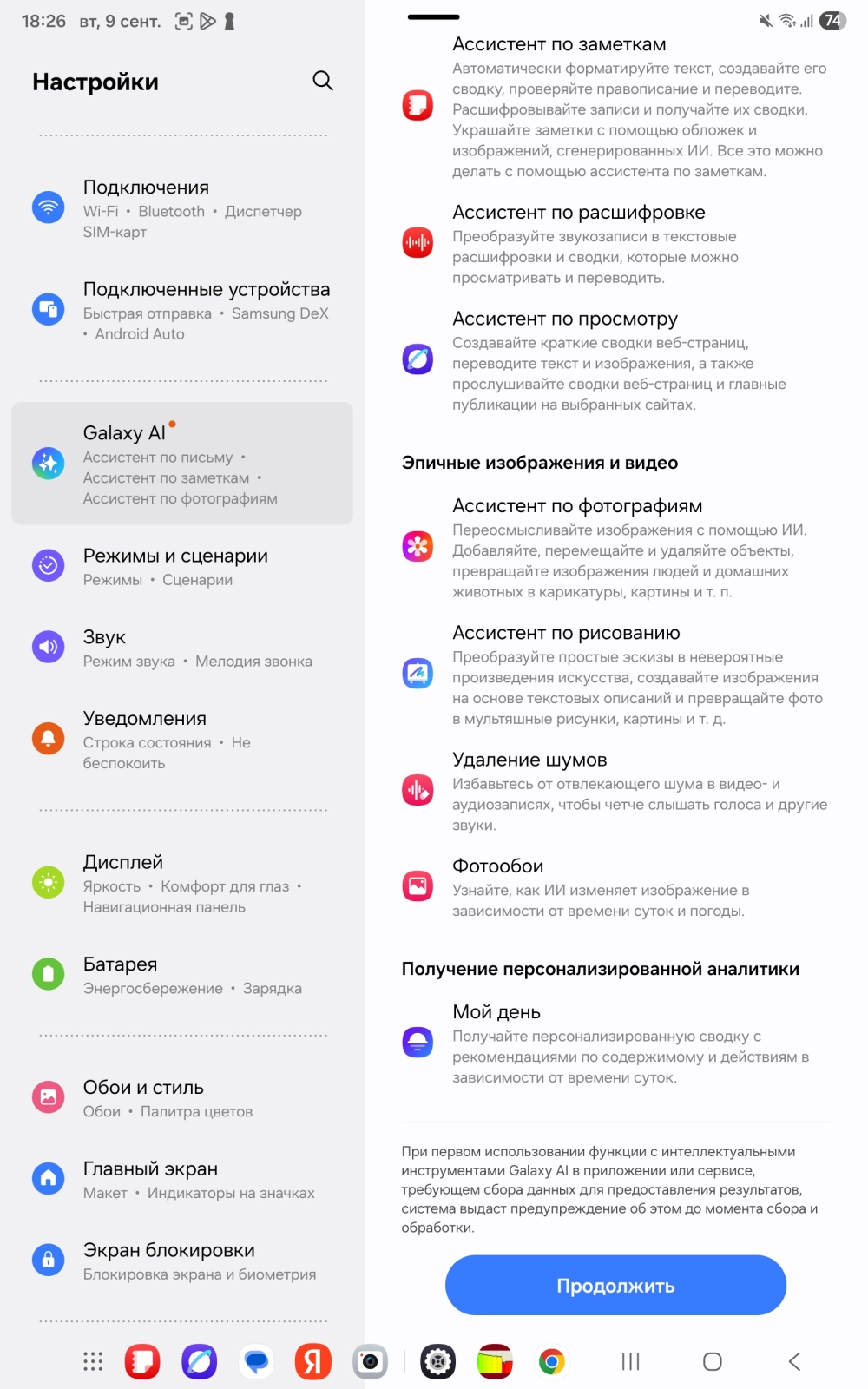 Помощник «Мой день» по традиции собирает данные из смарт-часов, Samsung Health, календаря и прогноза погоды, а потом выдаёт персональную сводку. Если вдруг решите поговорить по планшету, используя его как «звонилку», тогда «Синхронный перевод» во время звонка переводит диалог.