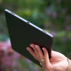 На правой грани находятся кнопка питания, качелька громкости и слот для SIM-карты плюс microSD. На левой — коннектор для аксессуаров вроде клавиатурного чехла. Камера на задней панели слегка выступает, но в пределах допустимого для корпуса такой толщины.