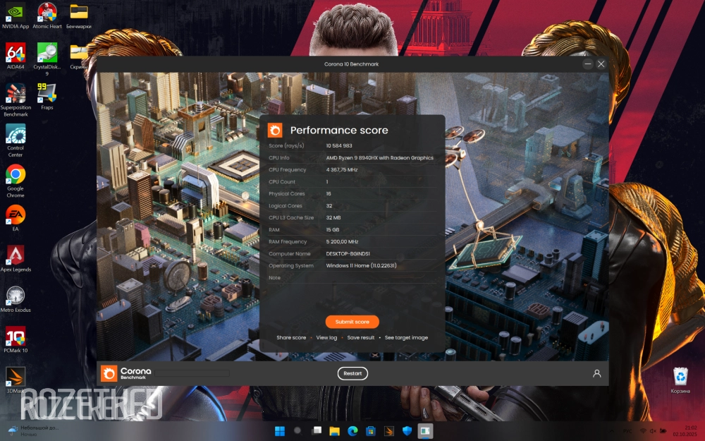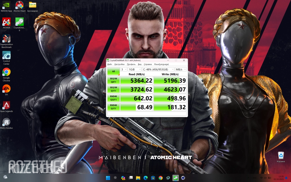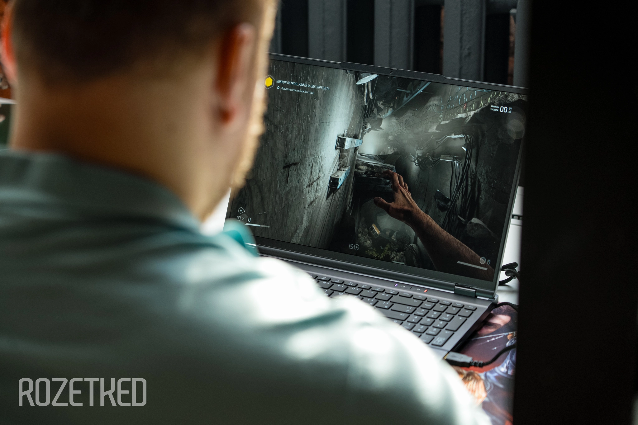 Естественно, проверили Maibenben X-Treme Typhoon X16B и в Atomic Heart. Противостояние восстанию роботов проходит в сопровождении уверенных 140–170 кадров в секунду на высоких настройках графики, параметры DLSS выставлены на обеспечение качества картинки, визуальные эффекты выставлены на максимум. Картинка красивая, плавная, время за игрой пролетает незаметно.