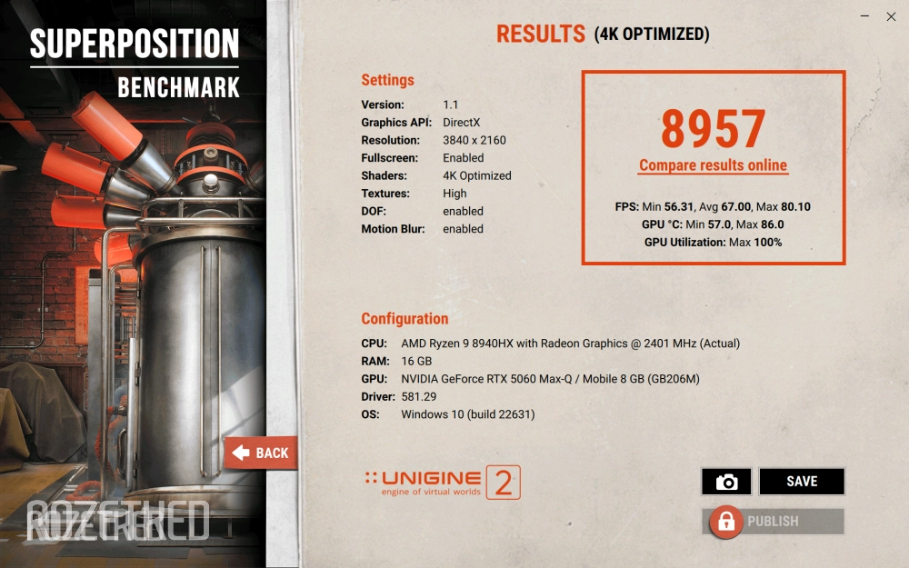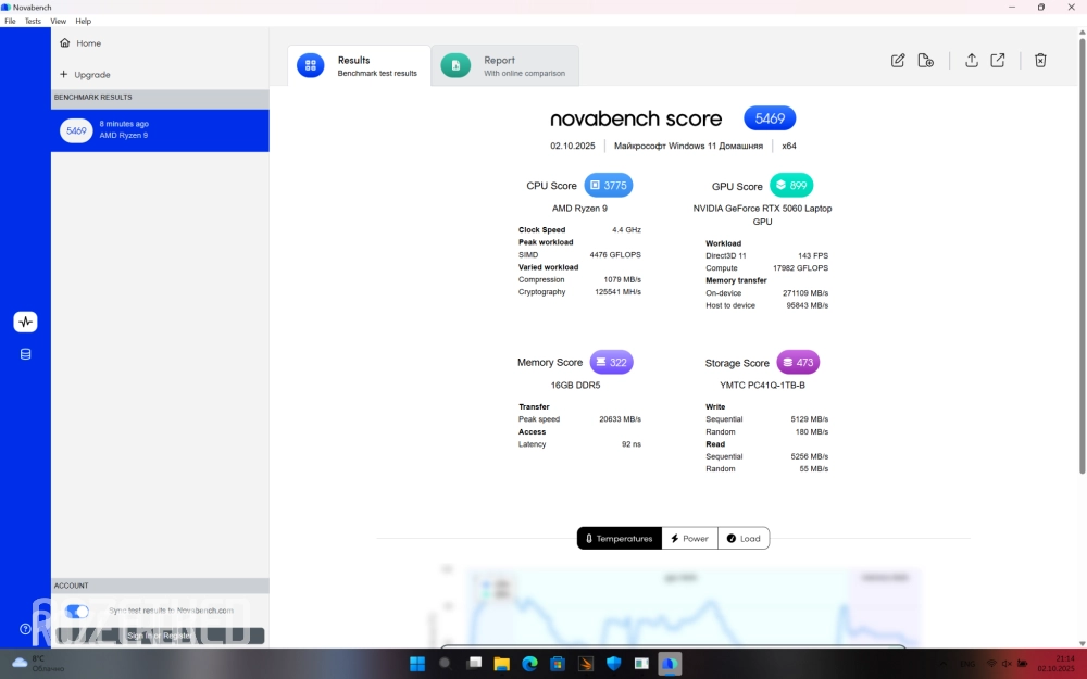 По привычке погонял и бенчмарки, отметил для себя отличные скорости чтения и записи накопителя, а также адекватные потенциальные возможности для гейминга с оптимизацией в 4К. Экстремальные тесты на трассировку показали средний результат в диапазоне 80 кадров в секунду, так что на ультранастройки рассчитывать не стоит. Перегрева системы не было отмечено ни в играх, ни в бенчмарках; ожидаемо нагревался корпус над клавиатурой — рукам нагрев никак не мешал.