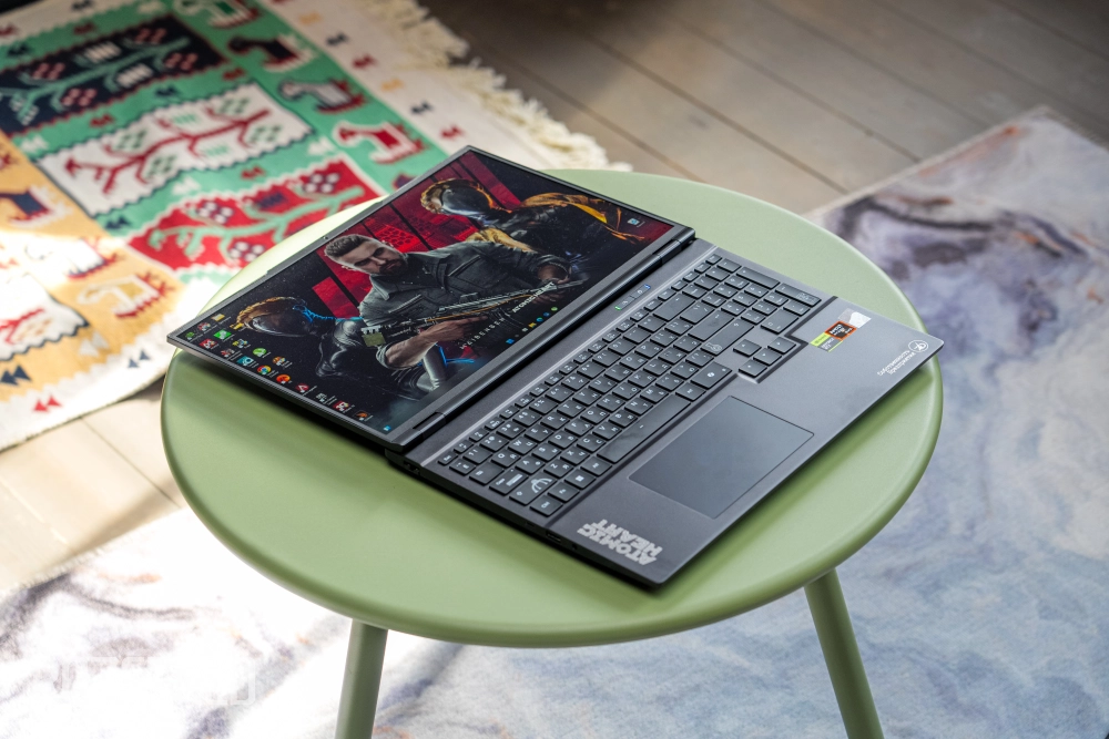 В лучших традициях игровых ноутбуков в относительно компактном корпусе уместился дисплей на 16 дюймов. Рамки тонкими не назвать, всё в адекватных пределах, ведь это не имиджевый ноутбук. «Подбородок» чуть более выражен, что оправдано с точки зрения отведения тепла. Соотношение сторон комфортное для работы и игр — 16:10.