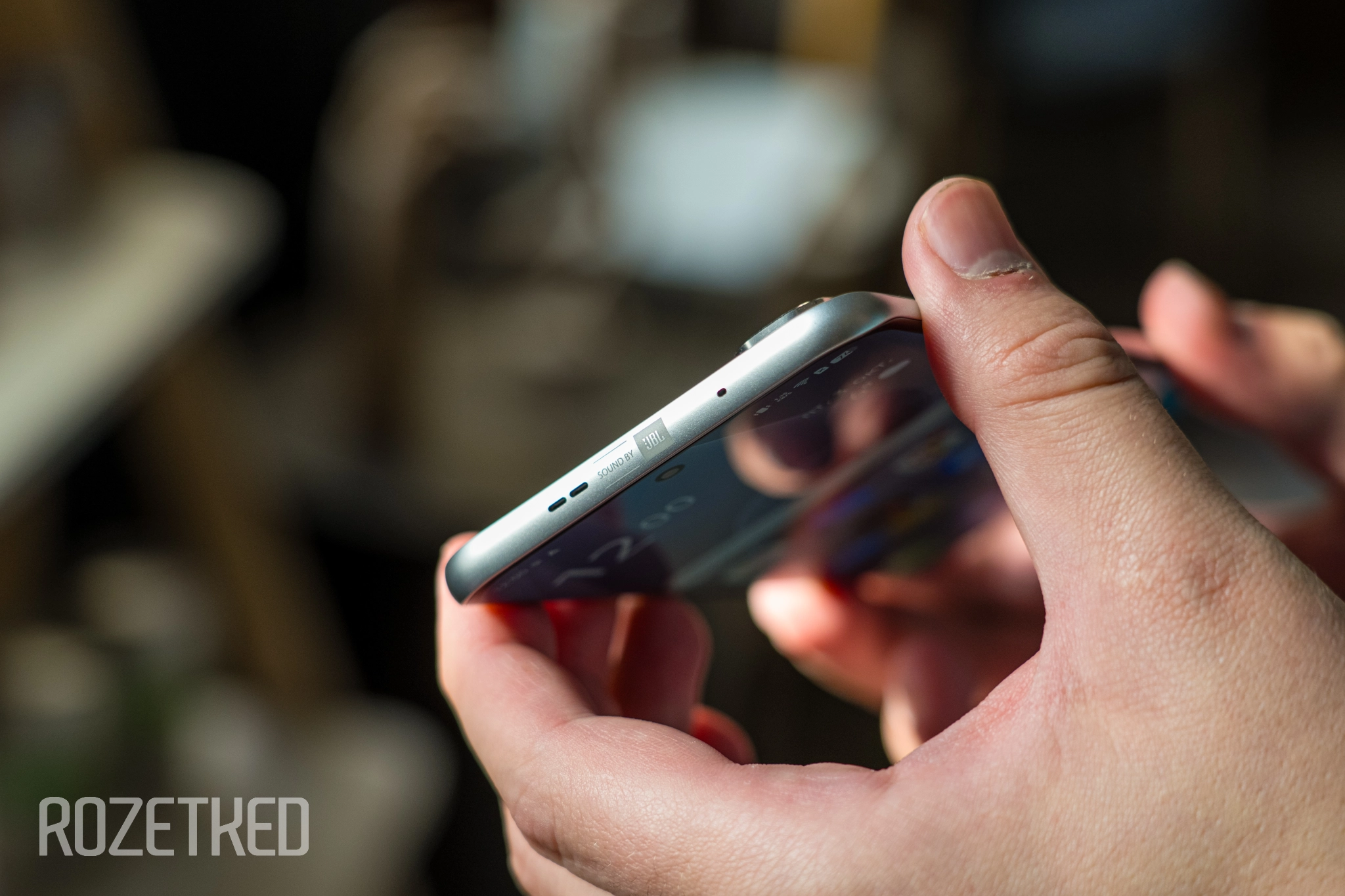 На торцах сверху и снизу за решётками расположены микрофоны и динамики. Здесь есть стереозвук: он в целом средний как по мощи, так и по качеству. На выдвижной лоток можно уложить две сим-карты без возможности установки карты памяти. Разъёма для мини-джека 3,5 мм проводной гарнитуры здесь, естественно, также нет.