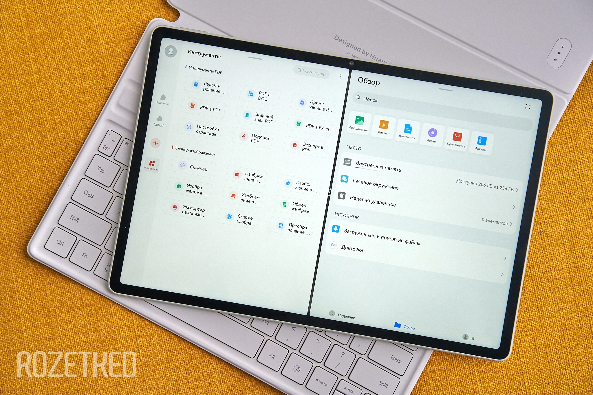 Система HarmonyOS 4.3 плавная и быстрая, за время теста планшет ни разу не подвис. Если пользуетесь смартфоном или ноутбуком Huawei, можете оценить экосистемные функции вроде Super Hub и Device+. Можно перетащить фото с телефона на планшет, вставить в заметку и всё готово.