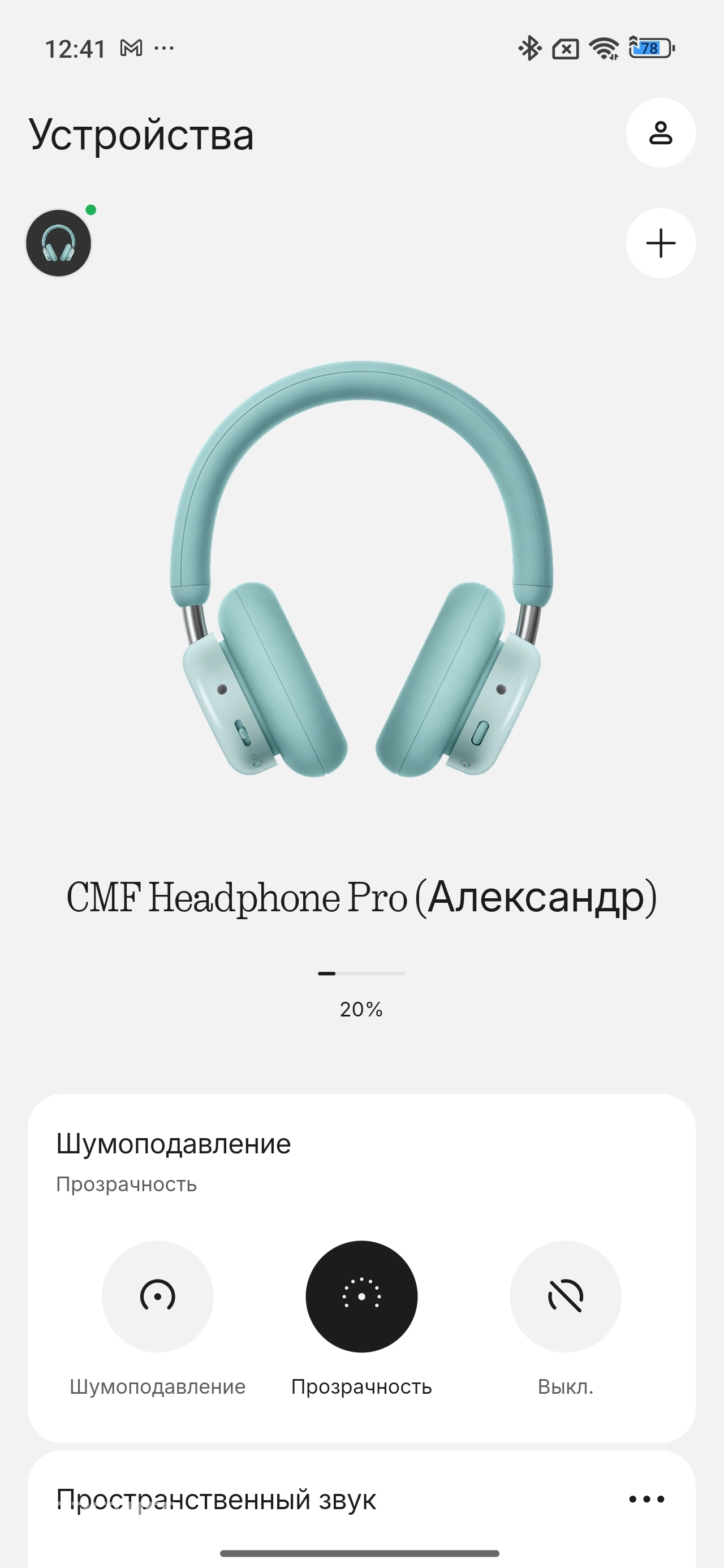 Настраивается сила шумоподавления, можно отключить шумодав или активировать режим прозрачности, добавить эффект пространственного аудио, поменять настройки управления. Для игр или видео дополнительно активируется режим малой задержки, чтобы не возникало нервозных ситуаций.