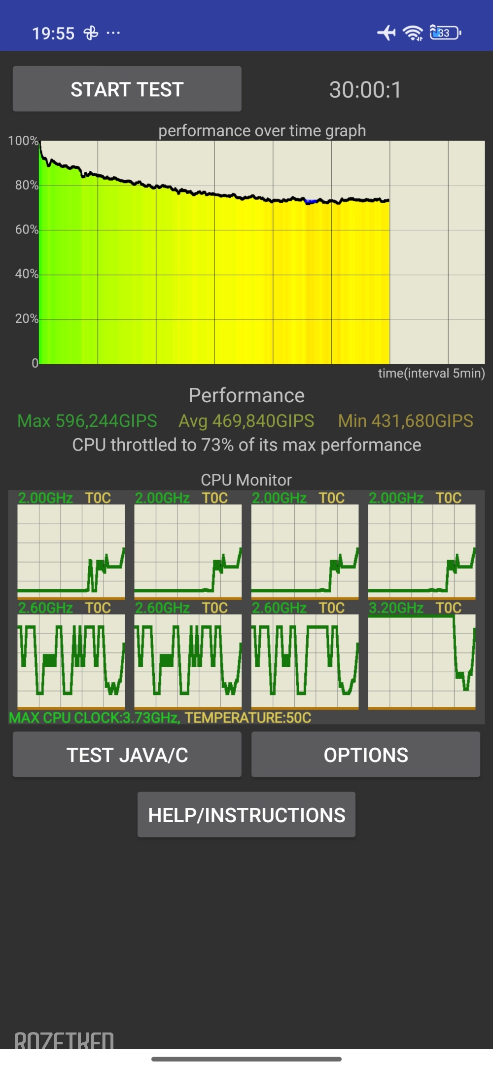 Если носить смартфон в чехле, то корпус прилично нагревается во время тяжёлых задач. Это можно почувствовать во время игр или съёмки видео высокого разрешения. Троттлинг присутствует, а температура под 47° даёт о себе знать. Как вариант, снимать чехол — тогда система охлаждения справляется лучше, это отчётливо видно на графиках.