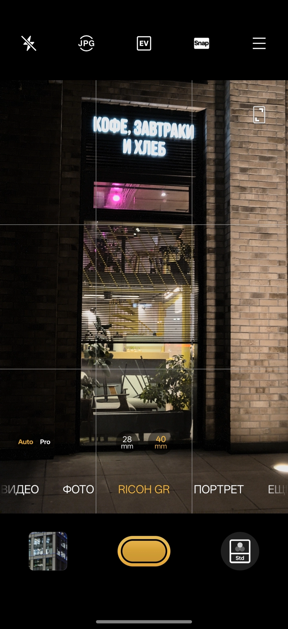 При переходе в фирменный режим чуть меняется интерфейс камеры: он становится похожим на видоискатель обычной камеры, скрываются быстрые переключатели и иконки настроек, благодаря чему визуально получается более чистый интерфейс. Меняется внешне и кнопка спуска. Лично мне такой режим внешне нравится даже больше стандартного — лаконичный и простой в использовании. Он доступен и для фронтальной камеры.