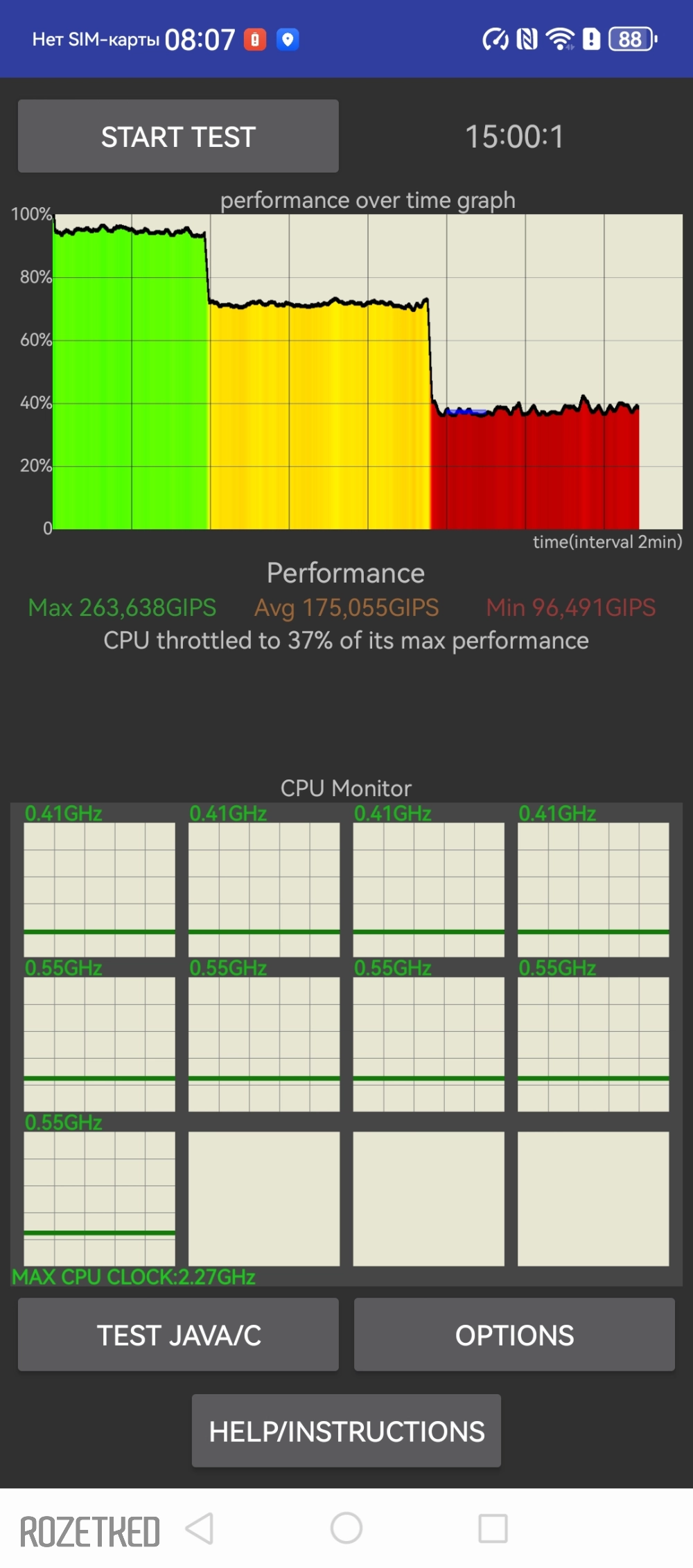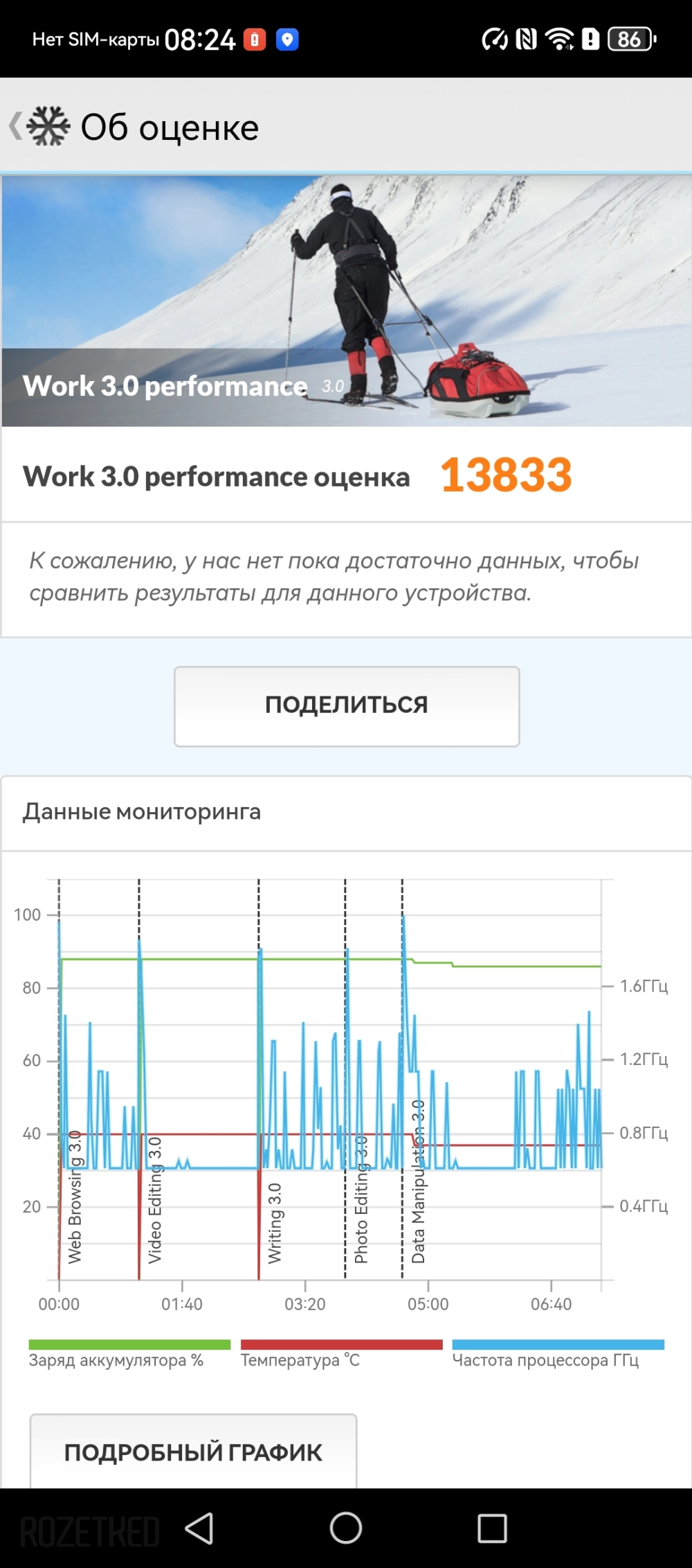 Системе охлаждения с испарительной камерой и графеновым теплоотводом отведено много внимания, но она не предотвращает перегрев при интенсивных нагрузках. Тесты подтверждают достаточно высокий уровень троттлинга.
