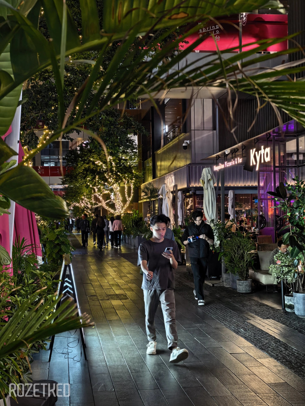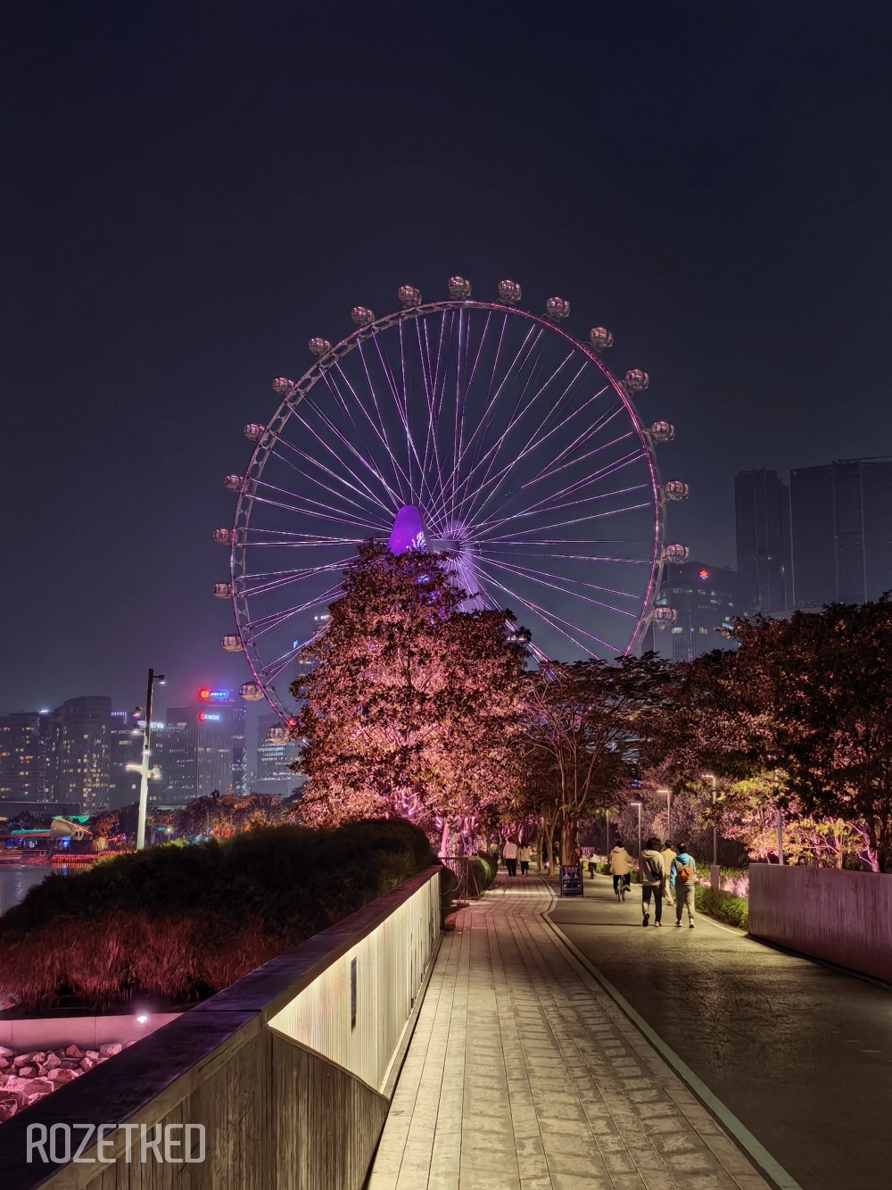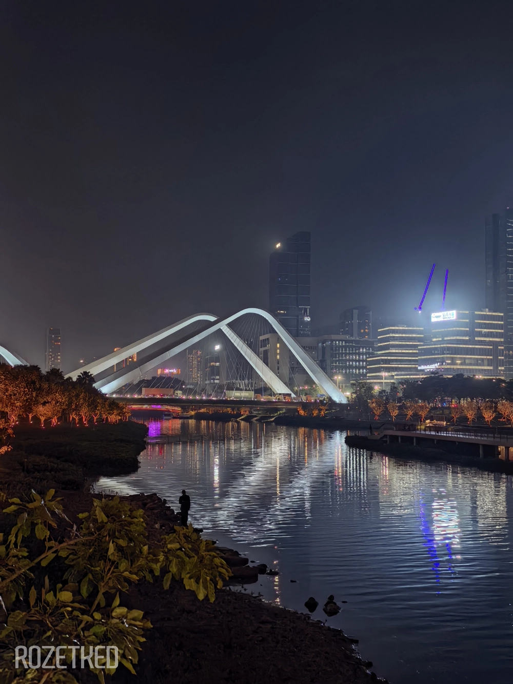 Телеобъектив с перископической системой и группой из 4+1 линз обеспечивает 3,5‑кратный оптический зум. Диафрагма f/2,2 пропускает больше света, что особенно заметно при съёмке вечерних пейзажей. Мотор фокусировки с многонаправленной стабилизацией компенсирует дрожание рук, сохраняя резкость кадров, что более важно именно при наведении на приближенный объект, чем при широкоугольной съёмке. Несмотря на обилие технических уловок, само качество зум-съёмки не флагманское. Днём оно детализированное, но с потерей света камера проявляет излишнюю ретивость в шарпинге.